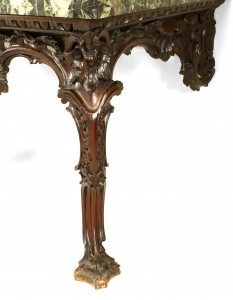 Style: English Materials & Techniques: Carved, mahogany, marble Category: Tables, Dining Room Condition: Needs to be secured to a wall.
