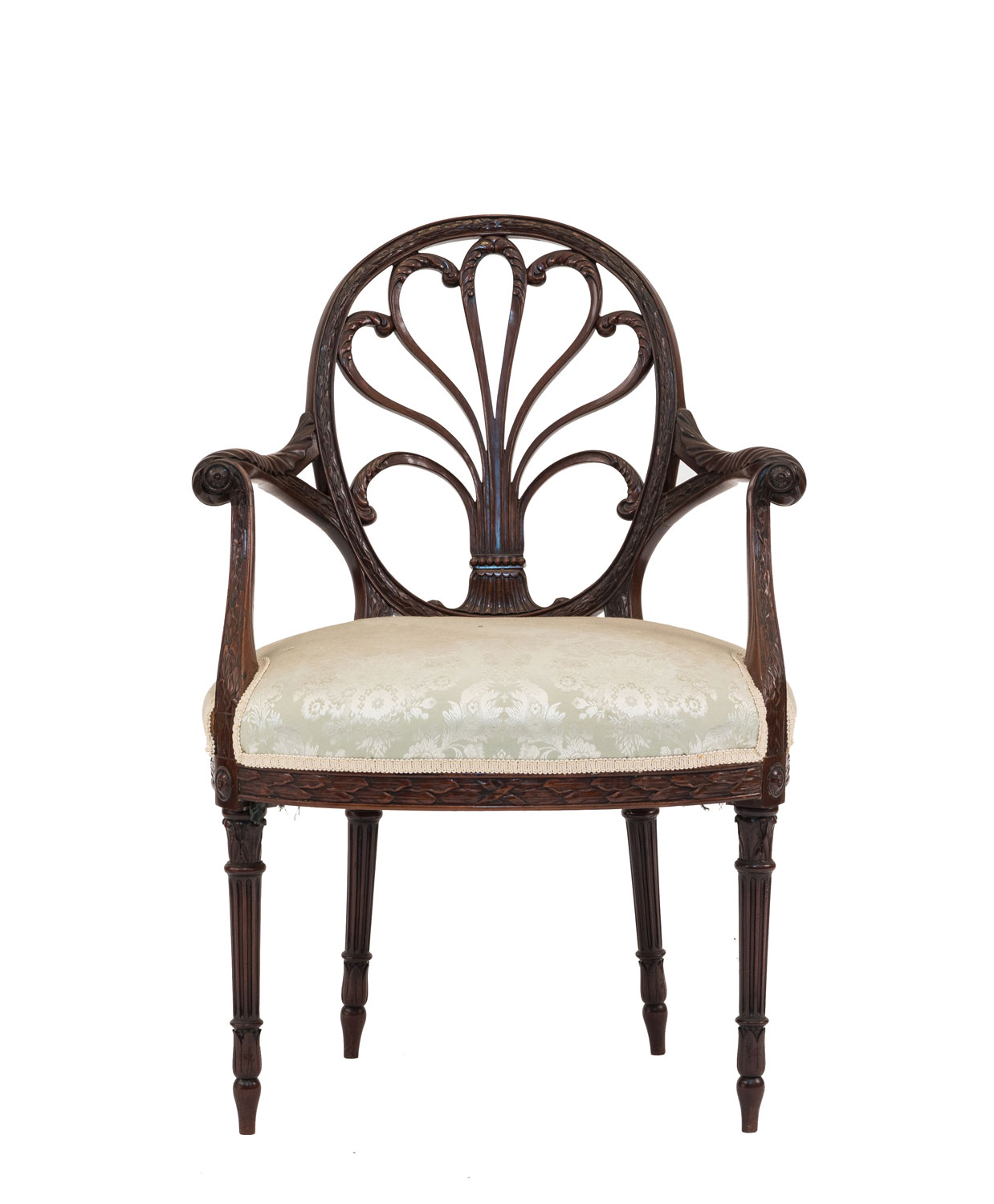 Style: English Materials & Techniques: Mahogany, carved Category: Seating