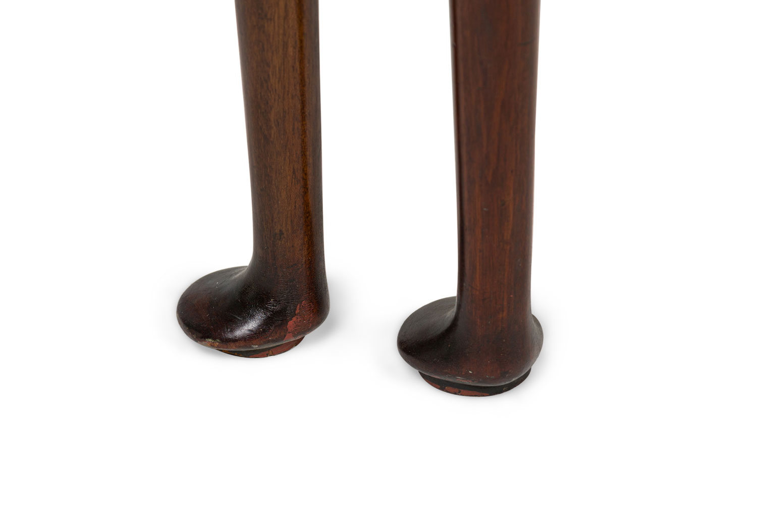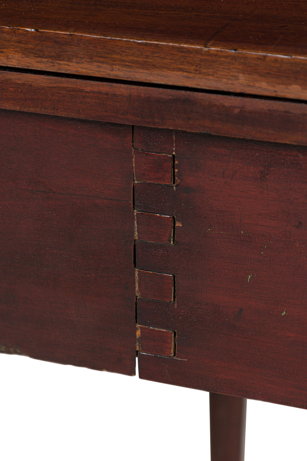 English Georgian-style (20th Century) mahogany triangular shaped flip top console table (Top measures 30.25" wide x 30.25" deep when opened)
