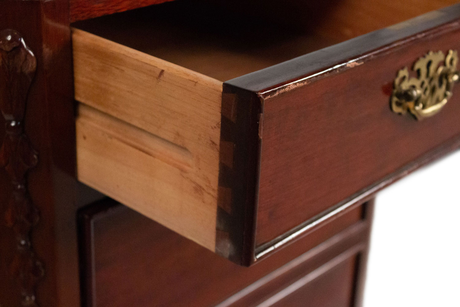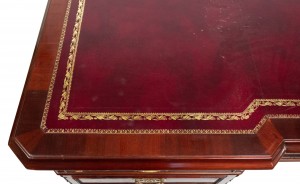 Style: English Materials & Techniques: Mahogany, leather Category: Tables, Office/Library Condition: Condition consistent with age of piece