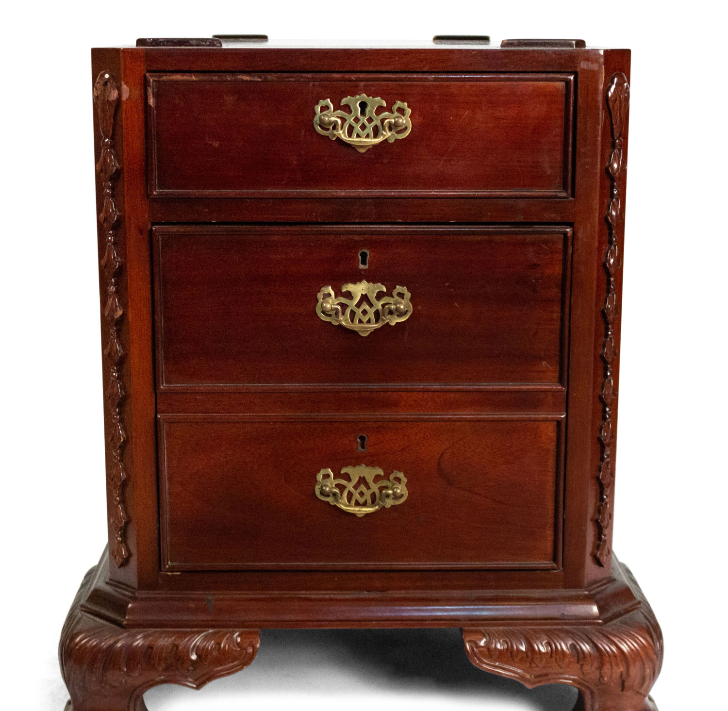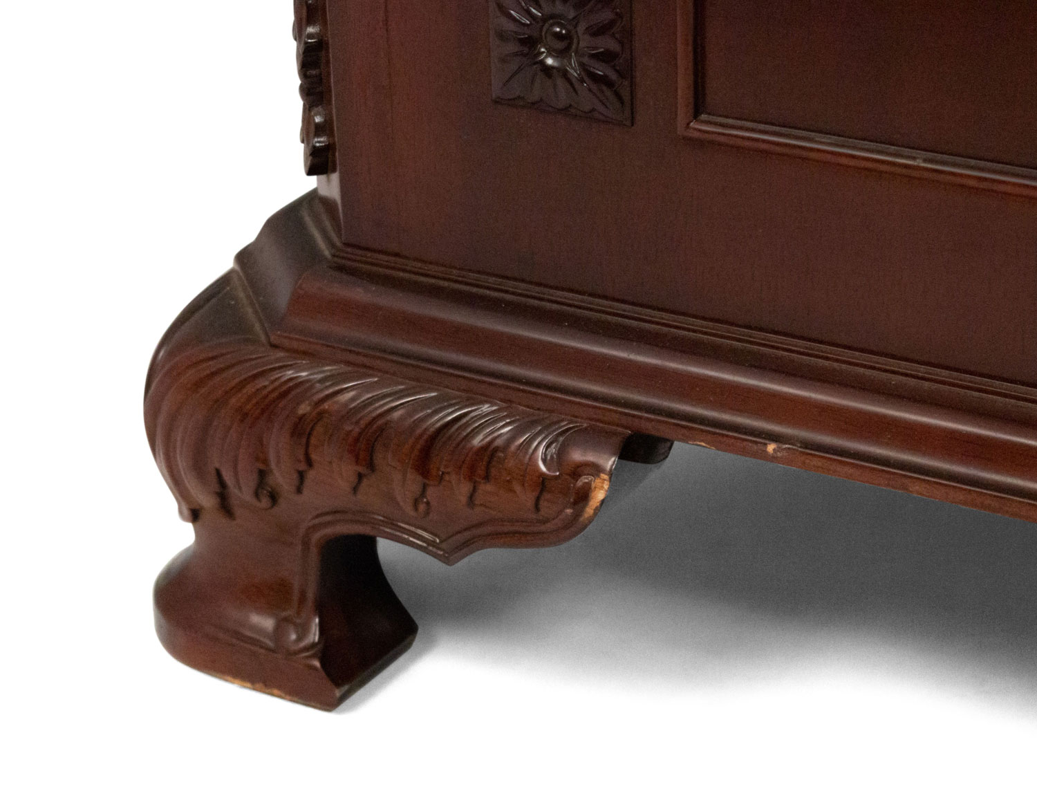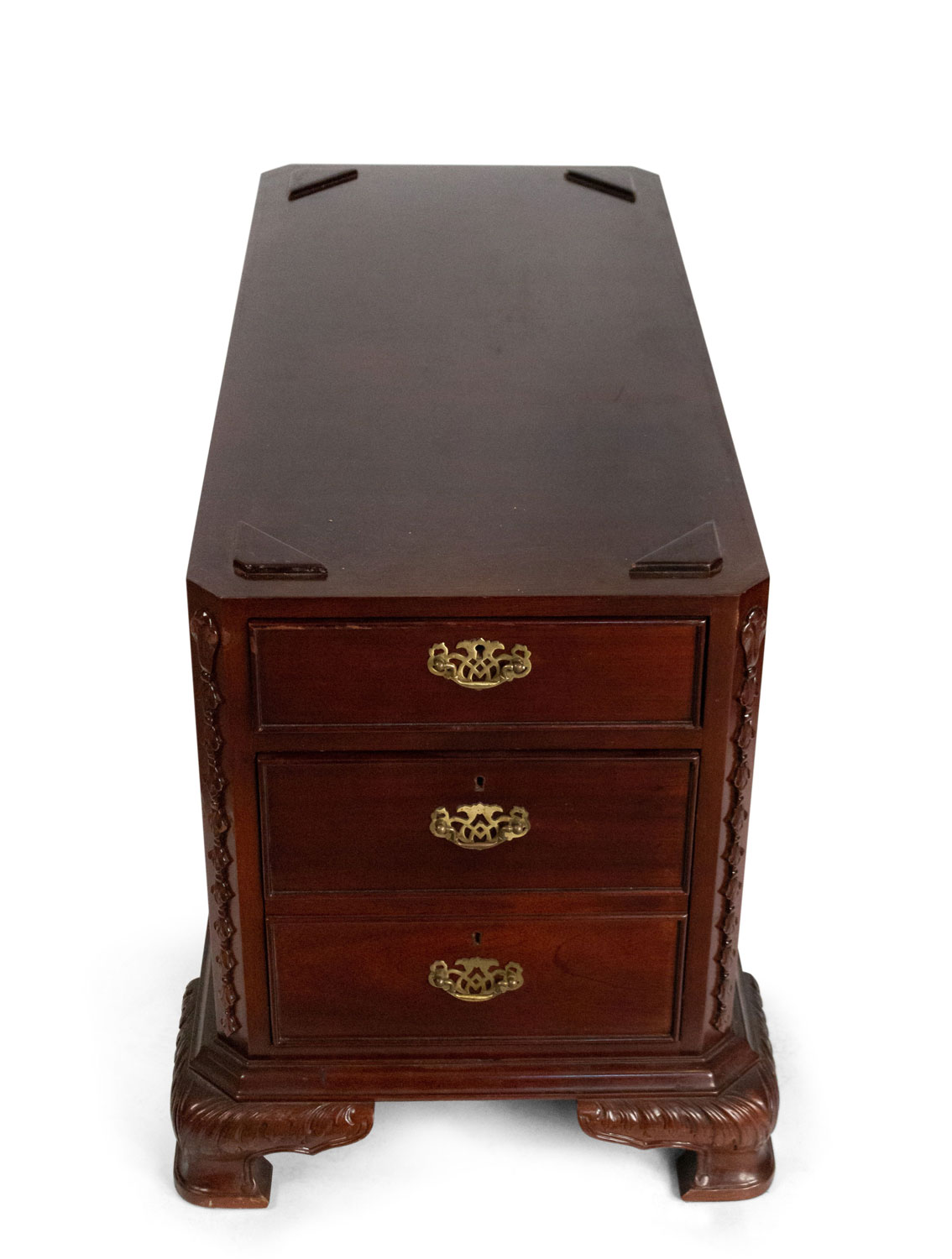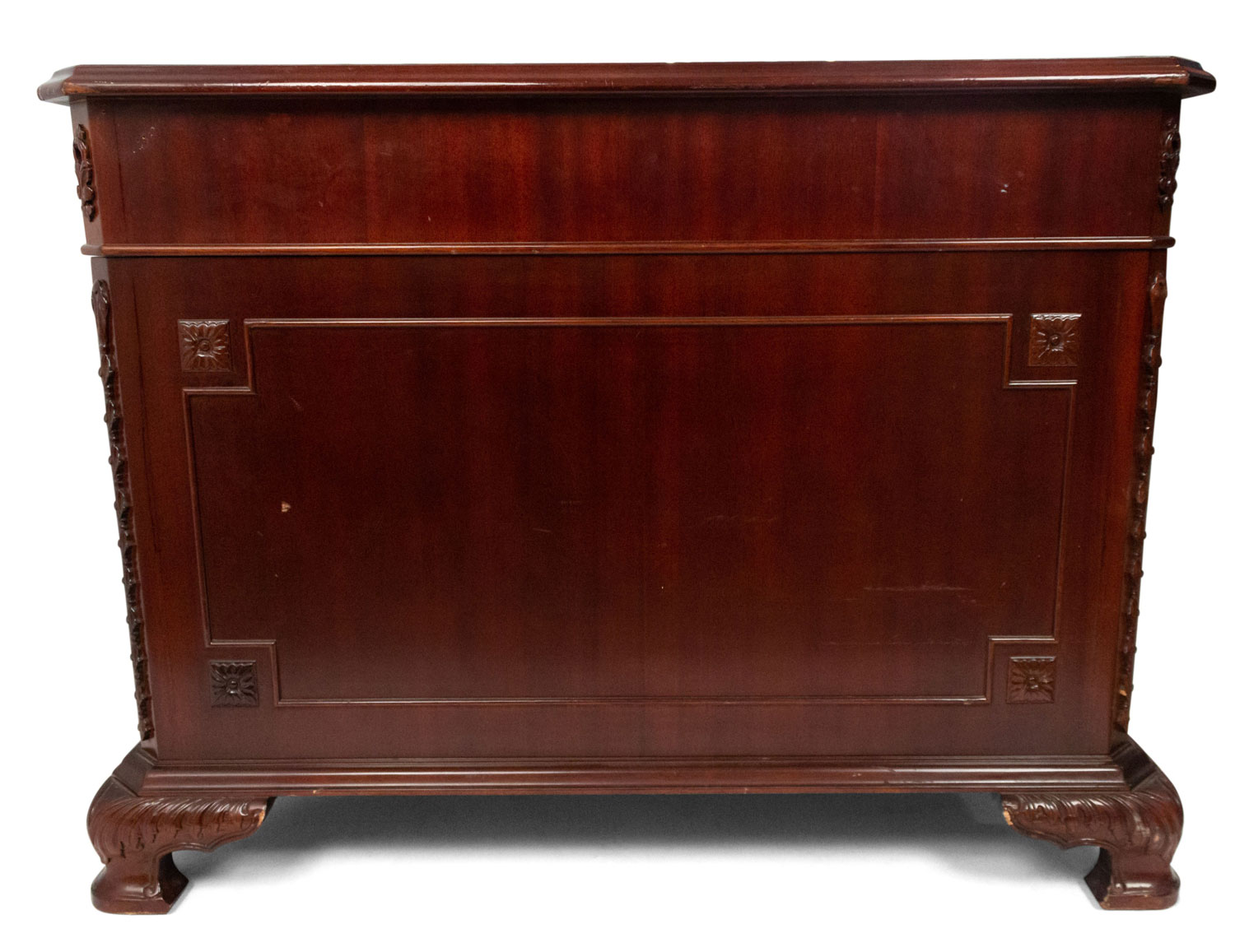 English Georgian style (20th Century) mahogany kneehole partners desk with 3 sections and burgundy leather top..