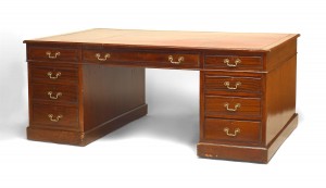 Style: English Materials & Techniques: Mahogany, leather Category: Tables, Office/Library Condition: Vintage condition.
