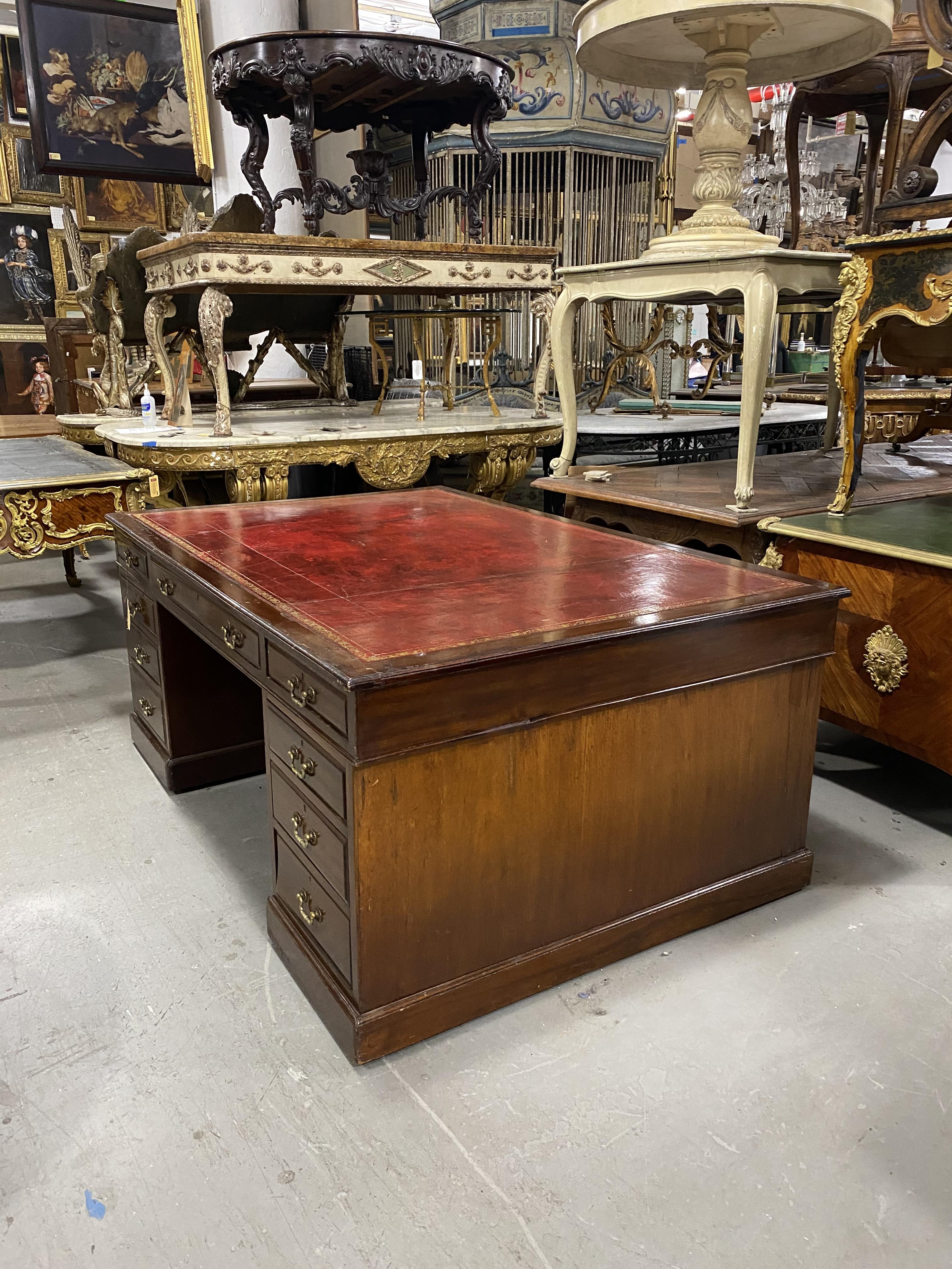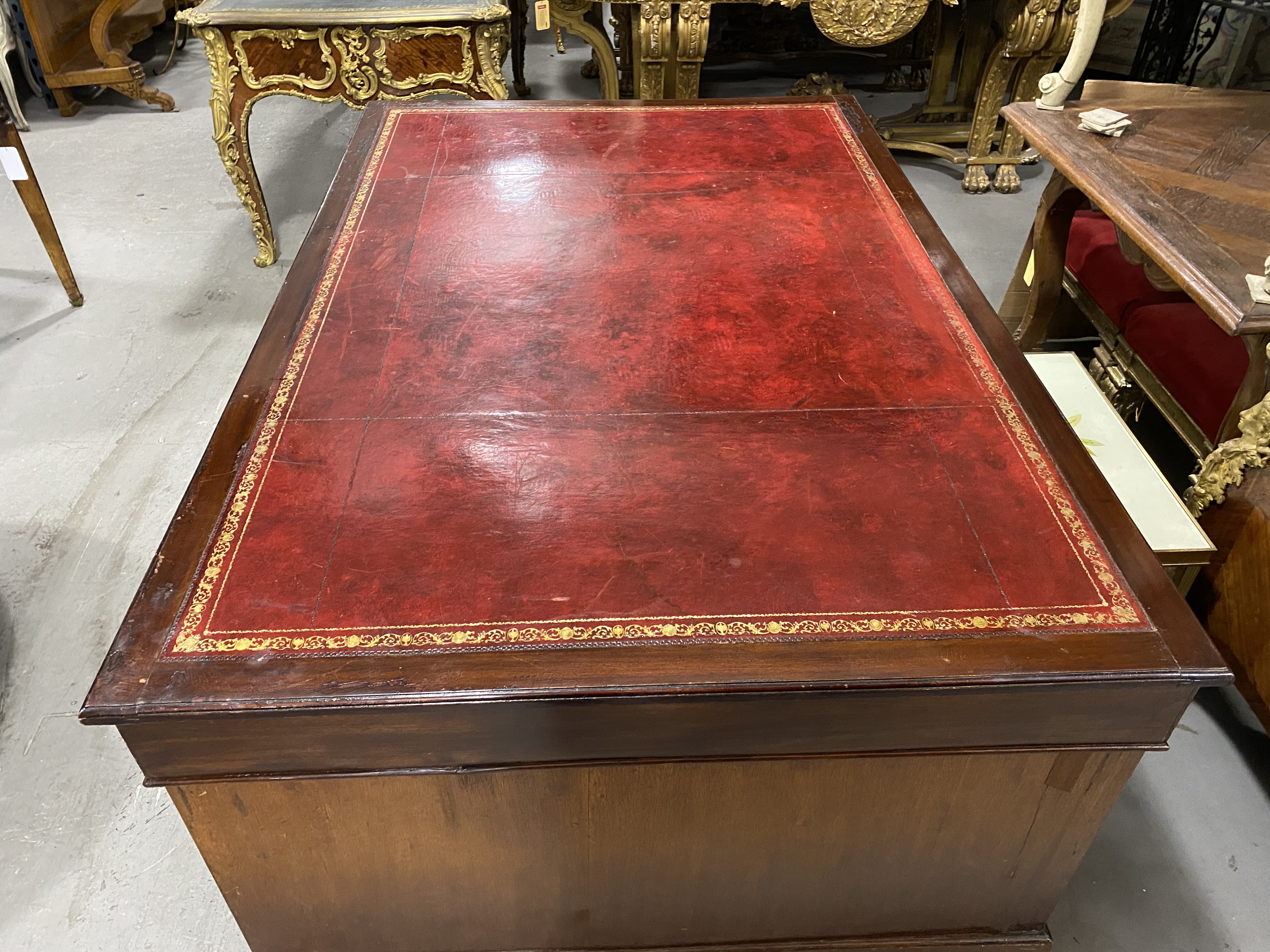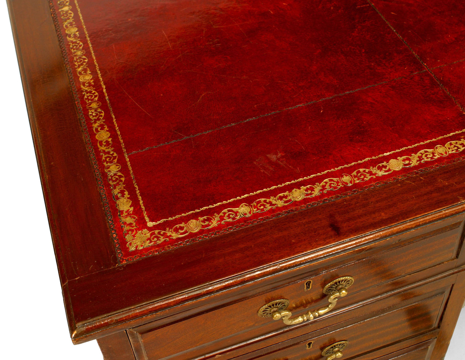 English Georgian style (19/20th Century) mahogany partner's desk with a red leather top, 3 sections.