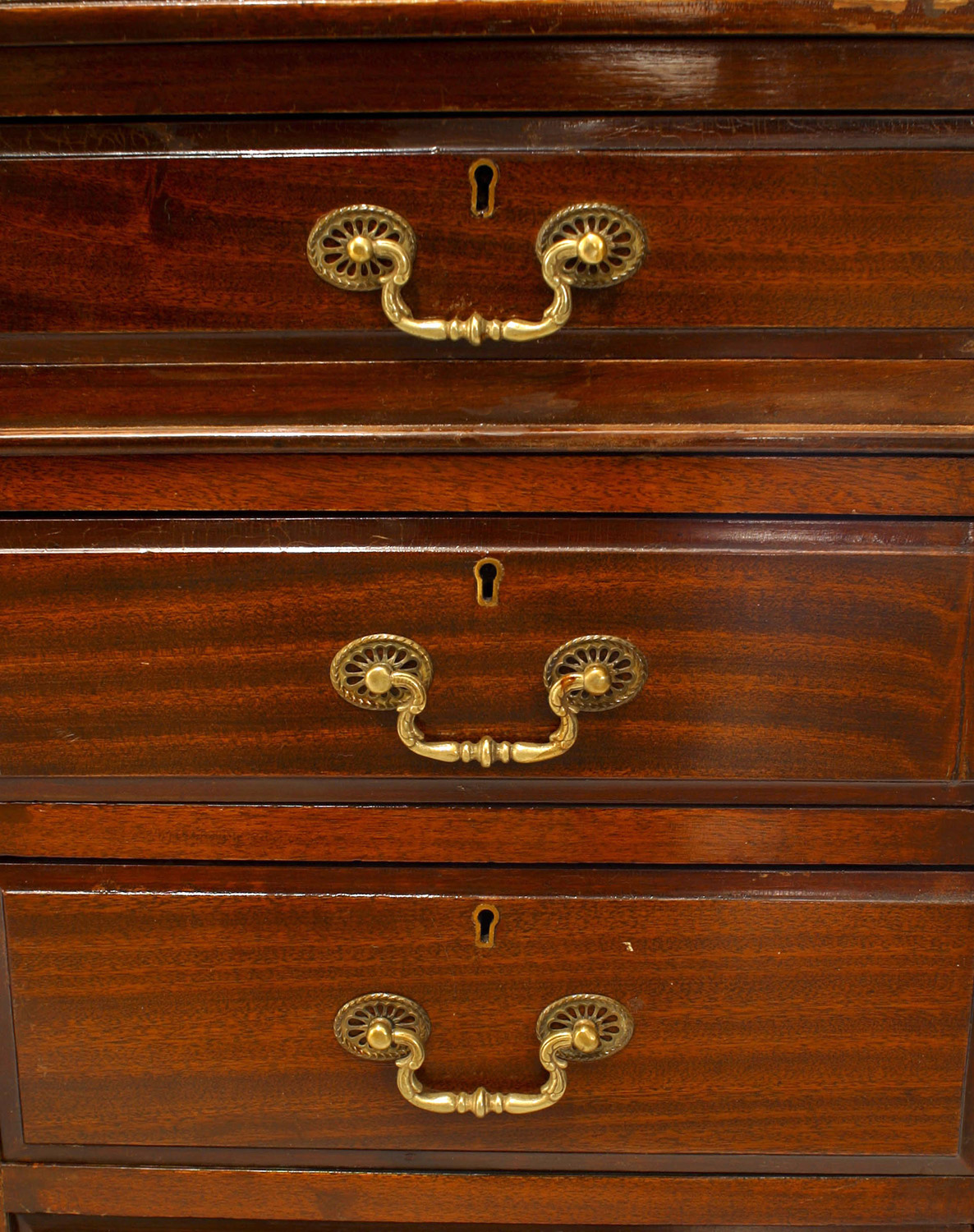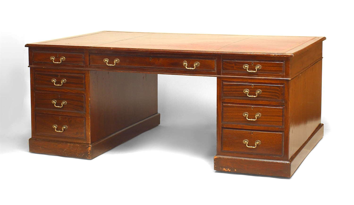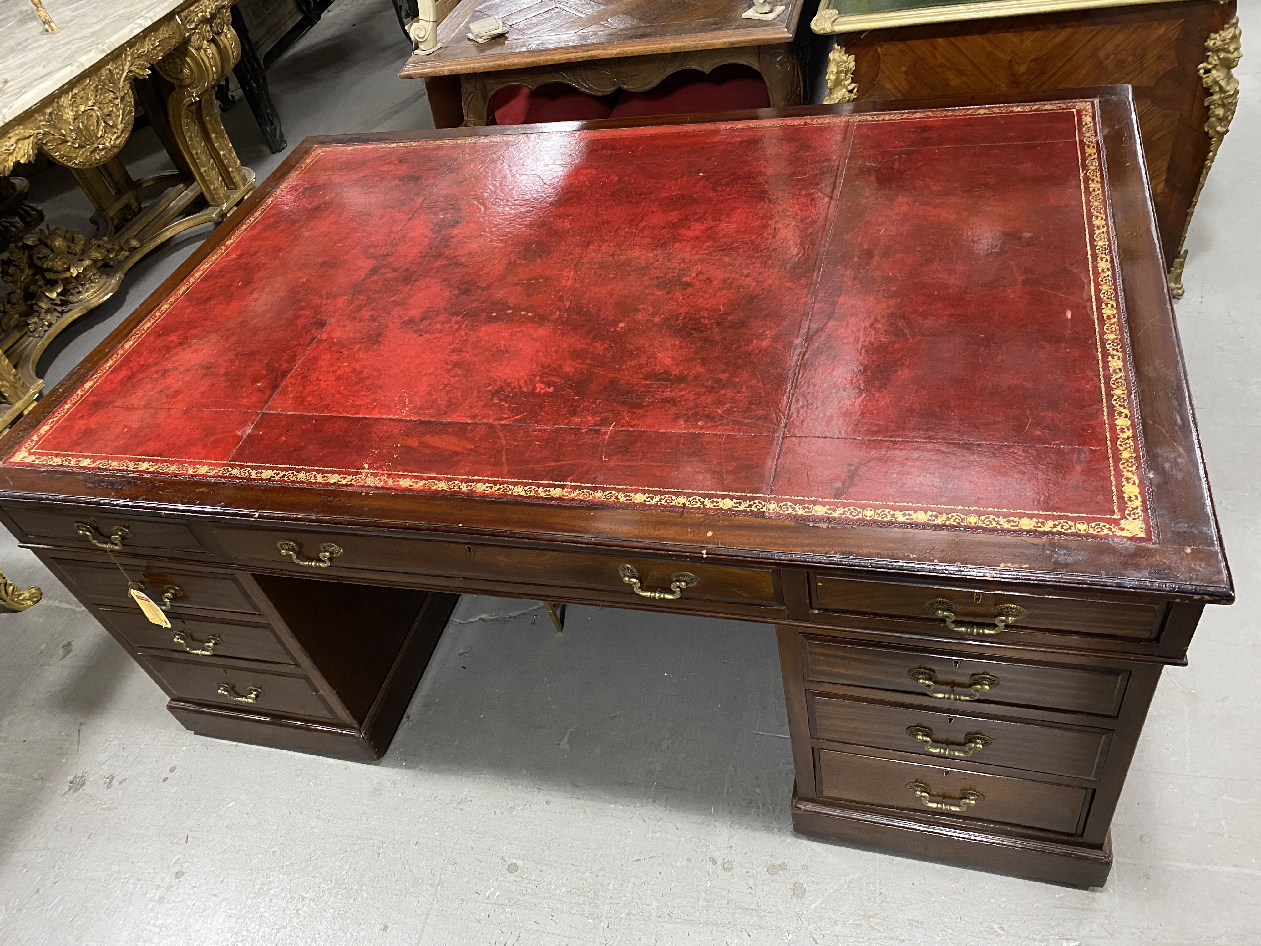 English Georgian style (19/20th Century) mahogany partner's desk with a red leather top, 3 sections.