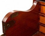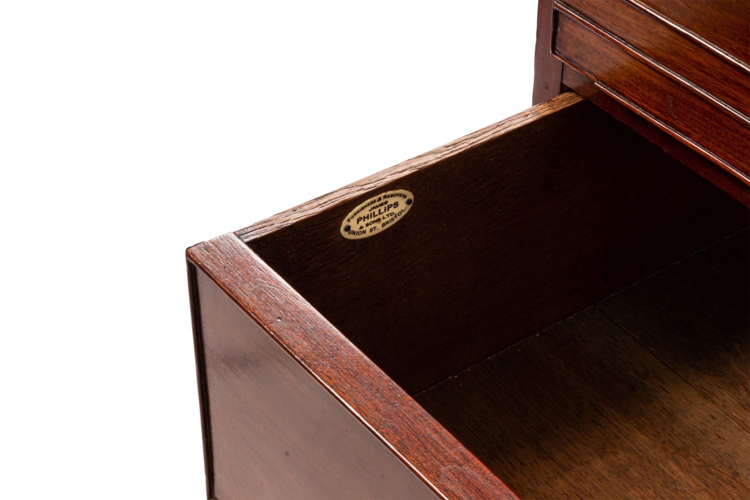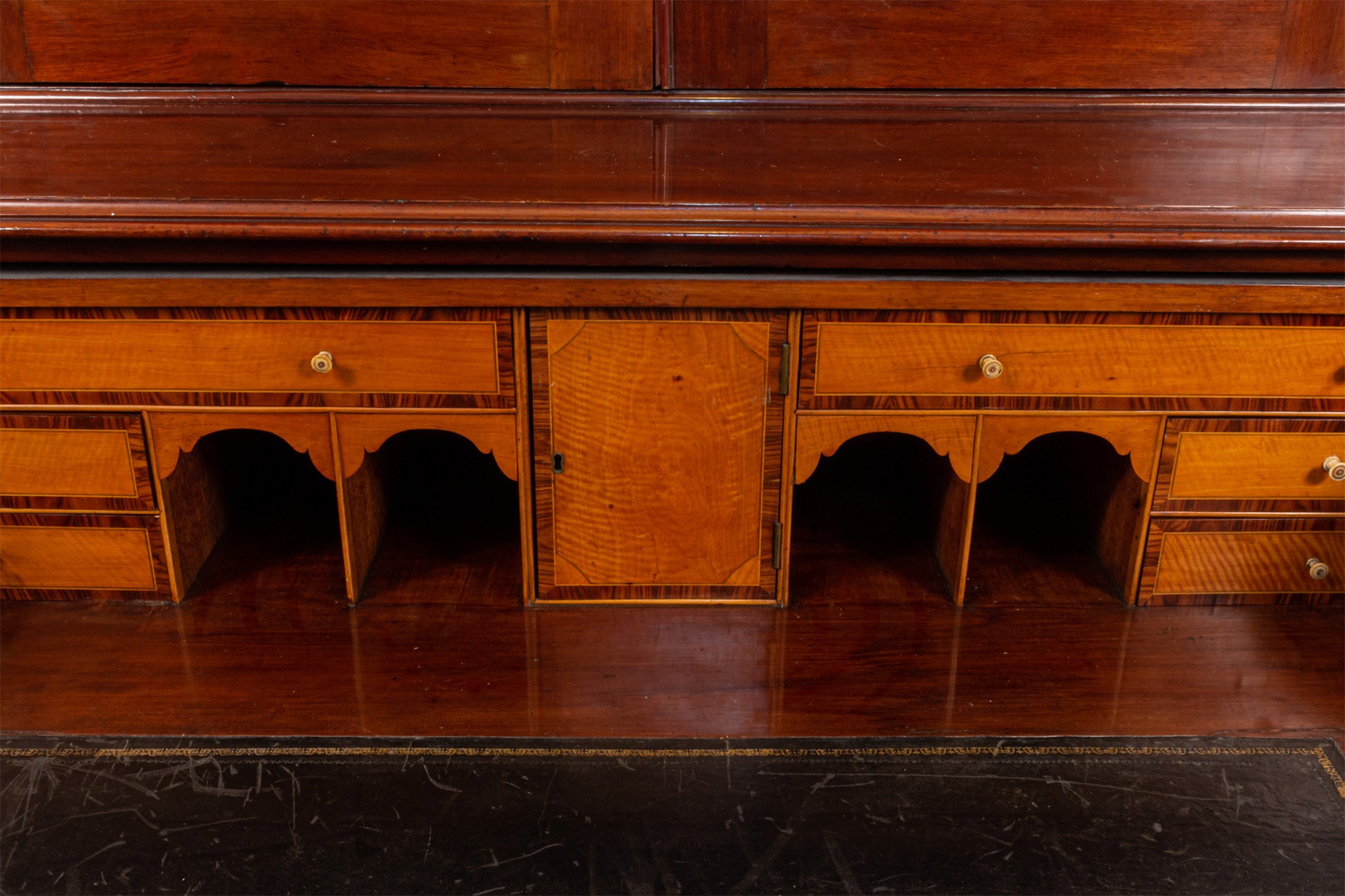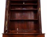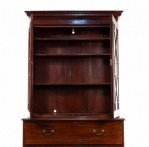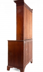 Style: English Materials & Techniques: Glass, mahogany Category: Cabinets & Case Goods, Office/Library Condition: Two drilled holes in back wall of cabinet, some damage to finish.