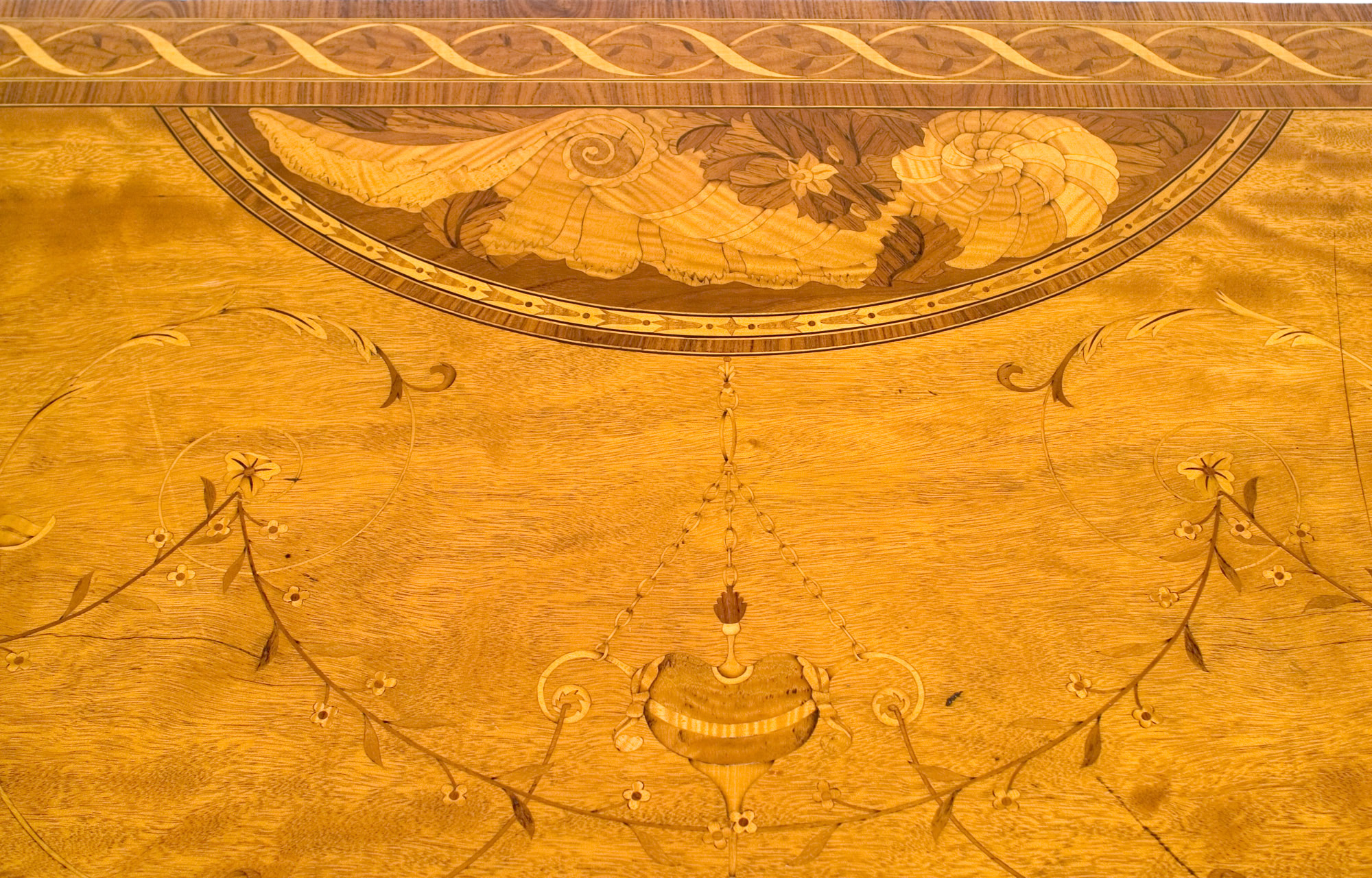 Style: English Materials & Techniques: Bronze, inlaid, satinwood, wood Category: Tables, Dining Room