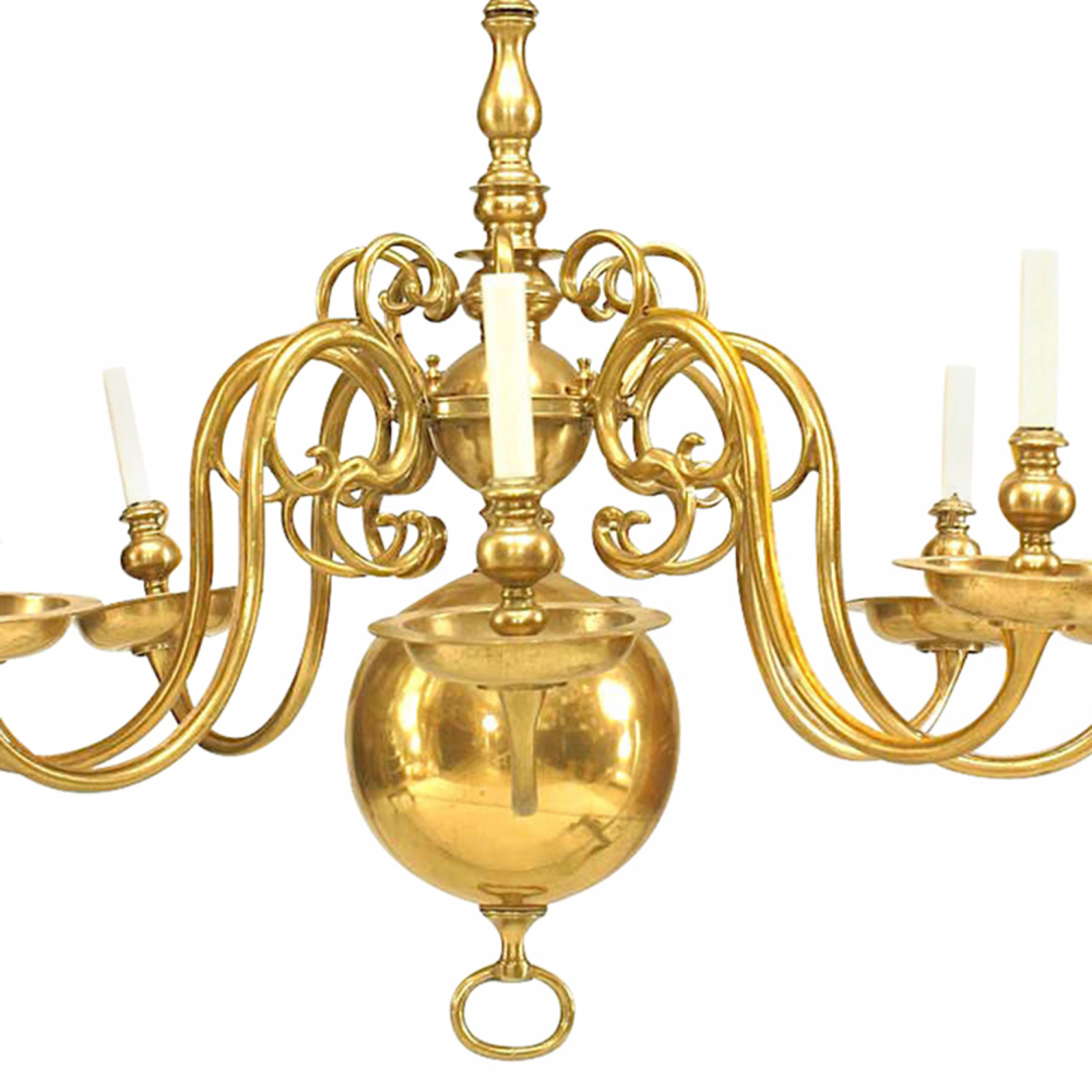 English Georgian Style Brass Scroll Chandelier