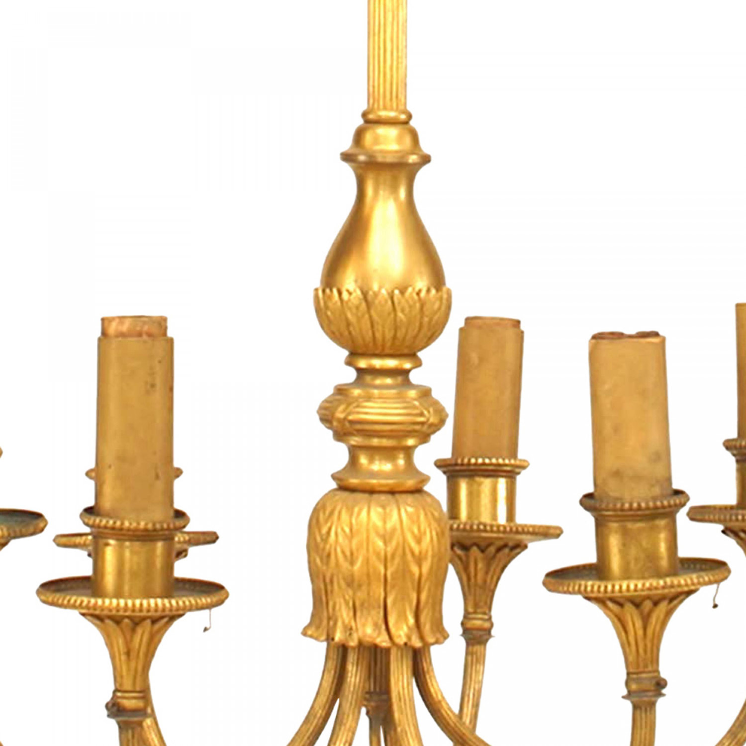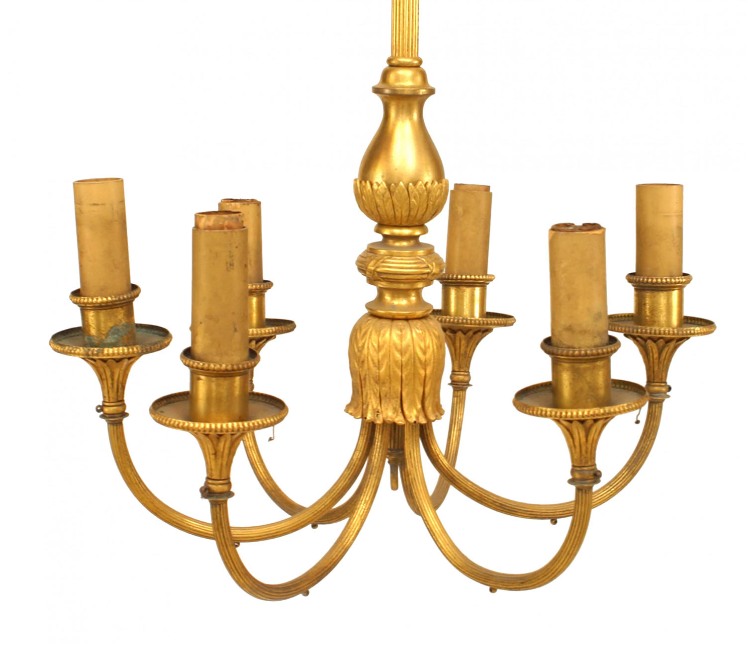 English Georgian-Style (20th Century) gilt bronze 6 arm fluted column chandelier with acanthus leaf trim..