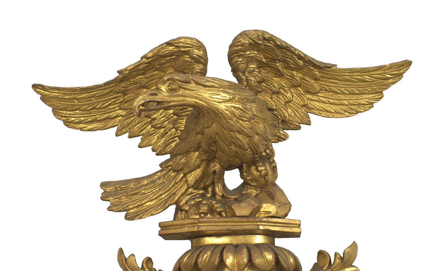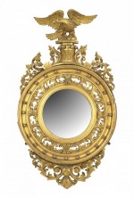 English Georgian Style Gilt Convex Eagle Pediment Wall Mirror