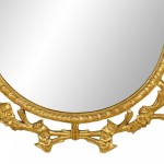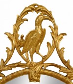English Georgian-style (19th/20th Century) gilt oval vertical wall mirror with filigree floral border and bird design top.