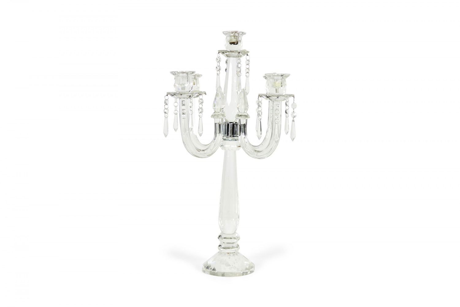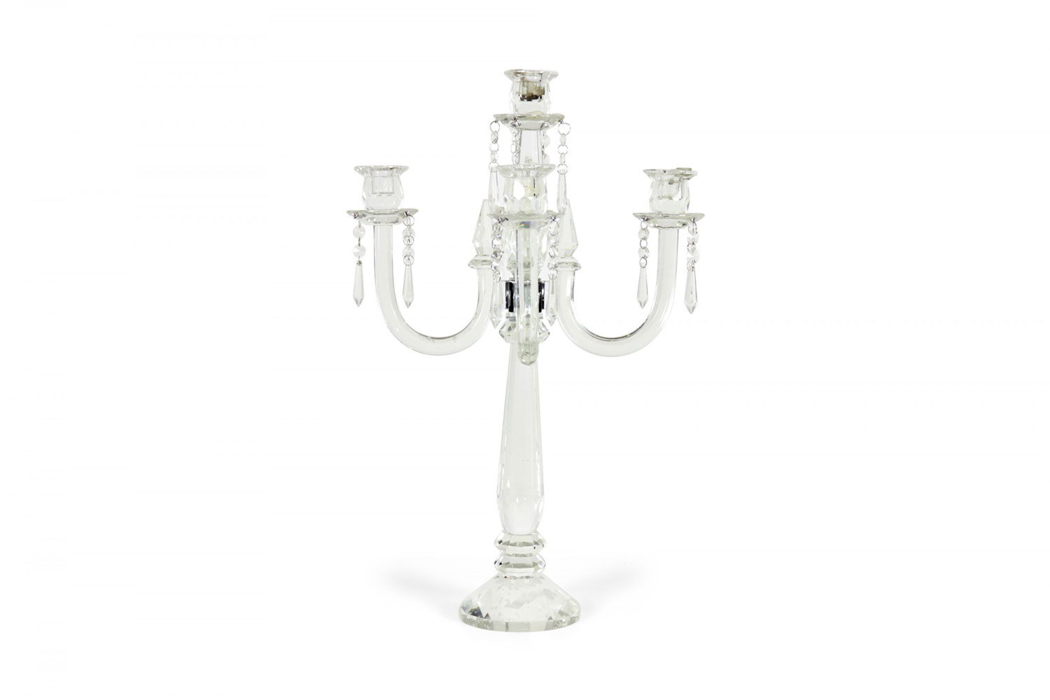 English Georgian Waterford-style (20th Century) crystal 5 arm candelabra with a faceted design..