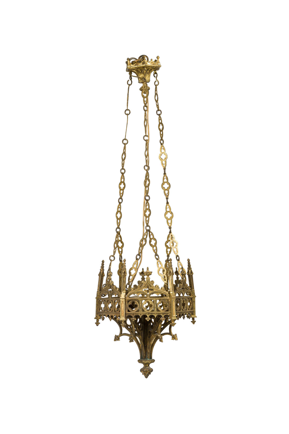 Gothic-Revival Gilt Bronze Sanctuary Chandlier