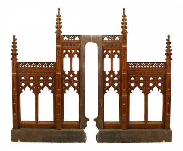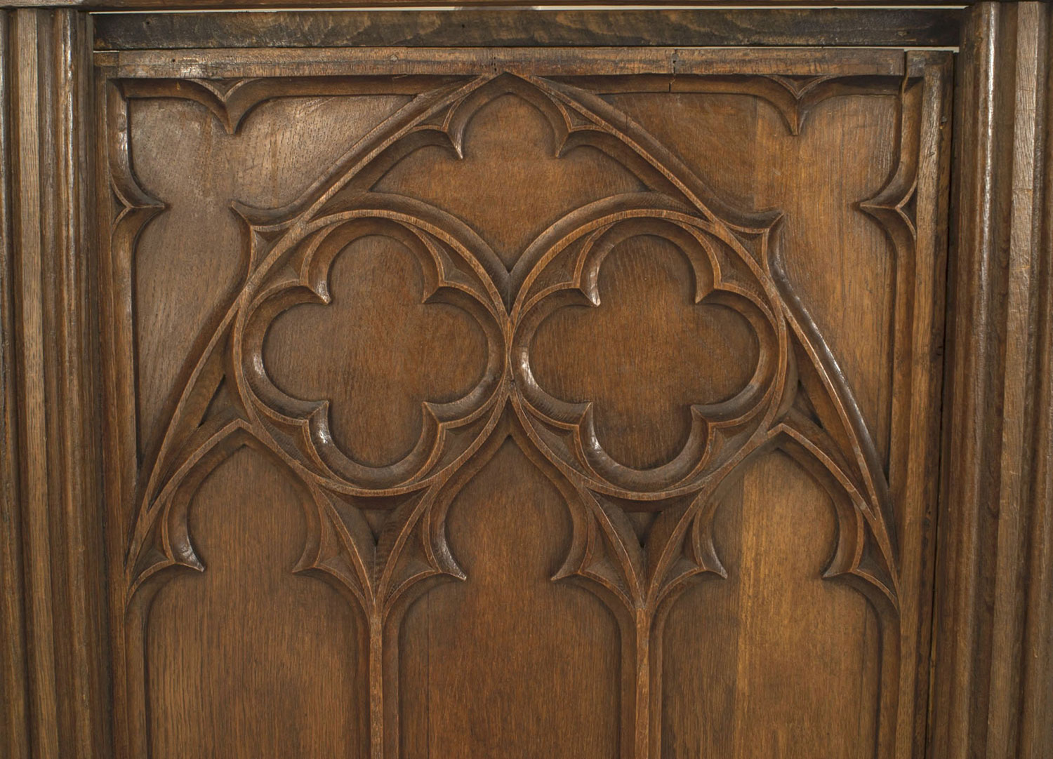 2 English Gothic Revival style (19th Century) oak paneled railings. one 85" long & one 75" long (PRICED EACH).