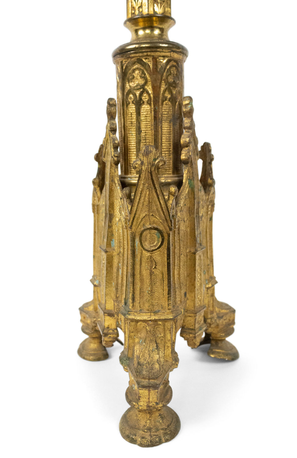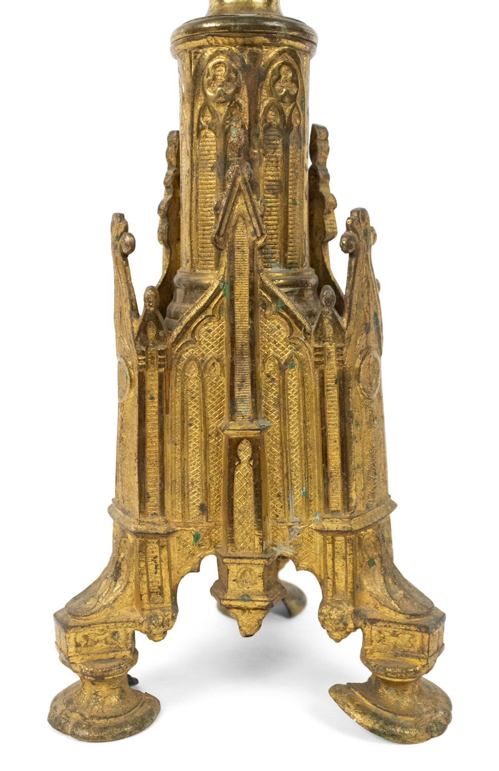 PAIR of English Gothic Revival-style (19th Century) bronze altar sticks with round pad feet (PRICED AS PAIR).