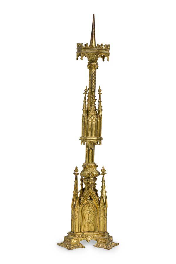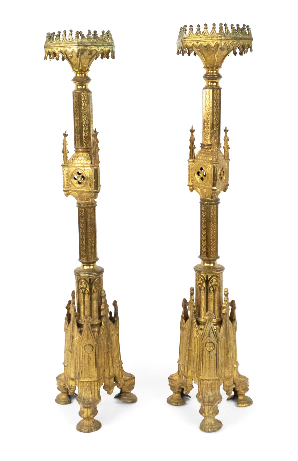 Pair of English Gothic Revival Style Bronze Altar Candlesticks