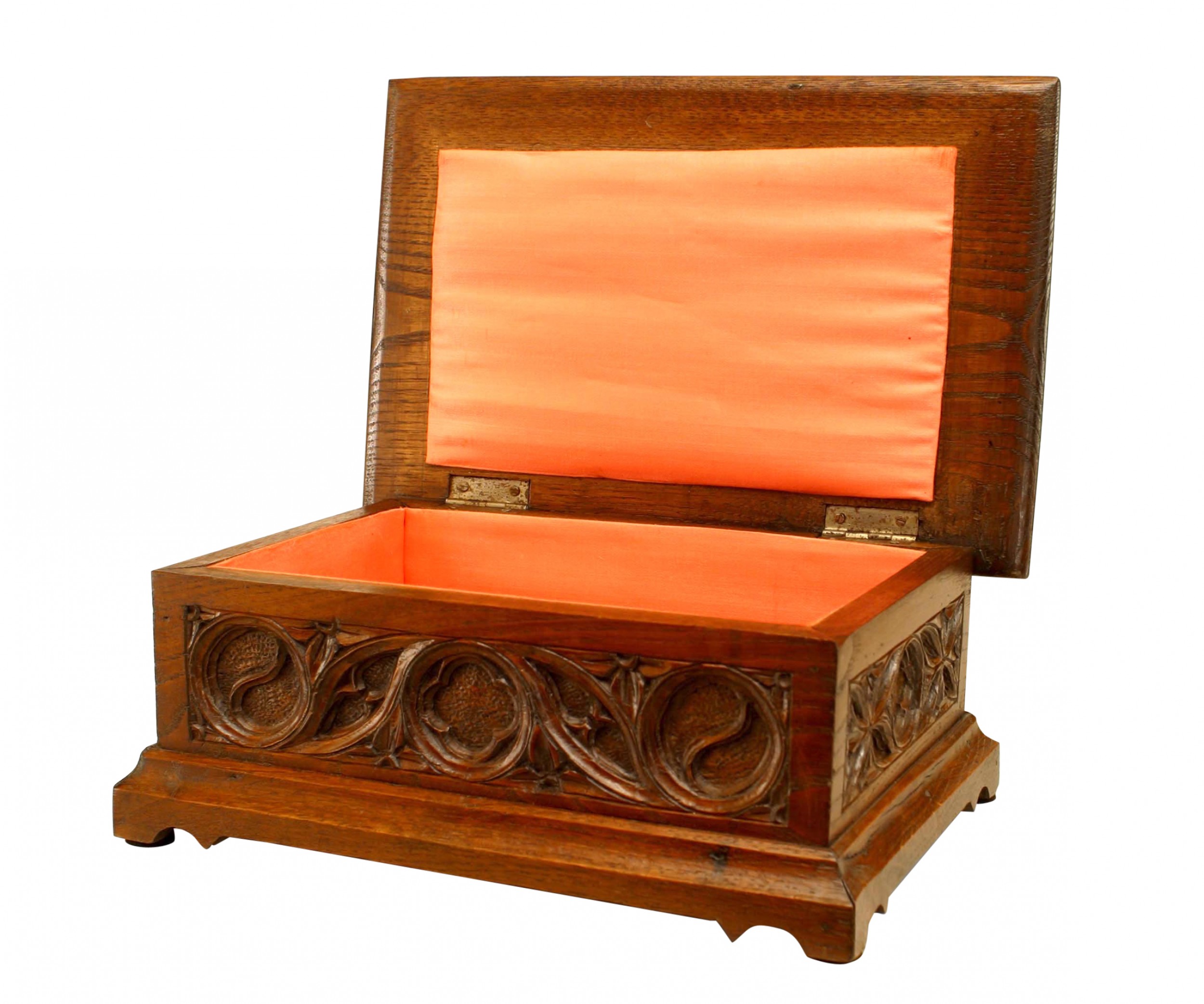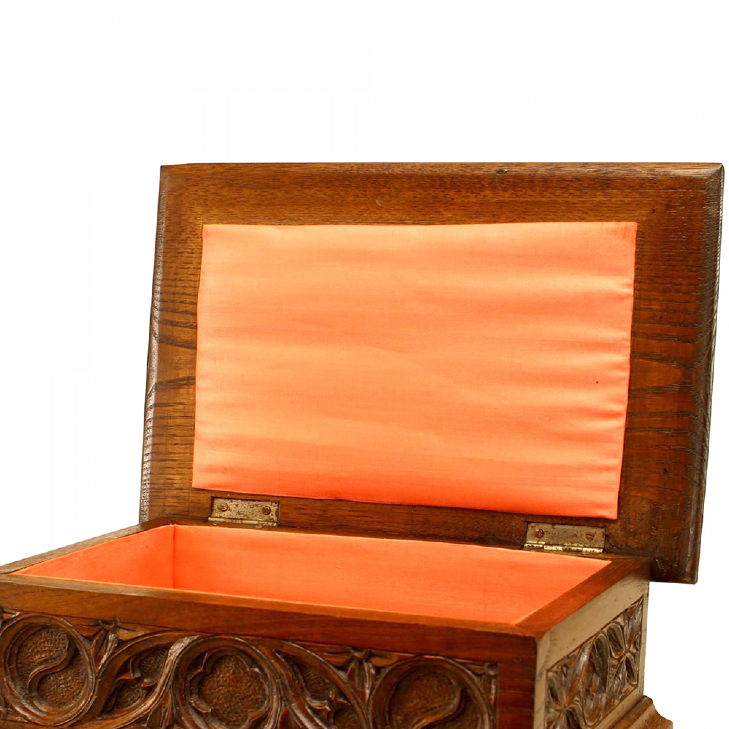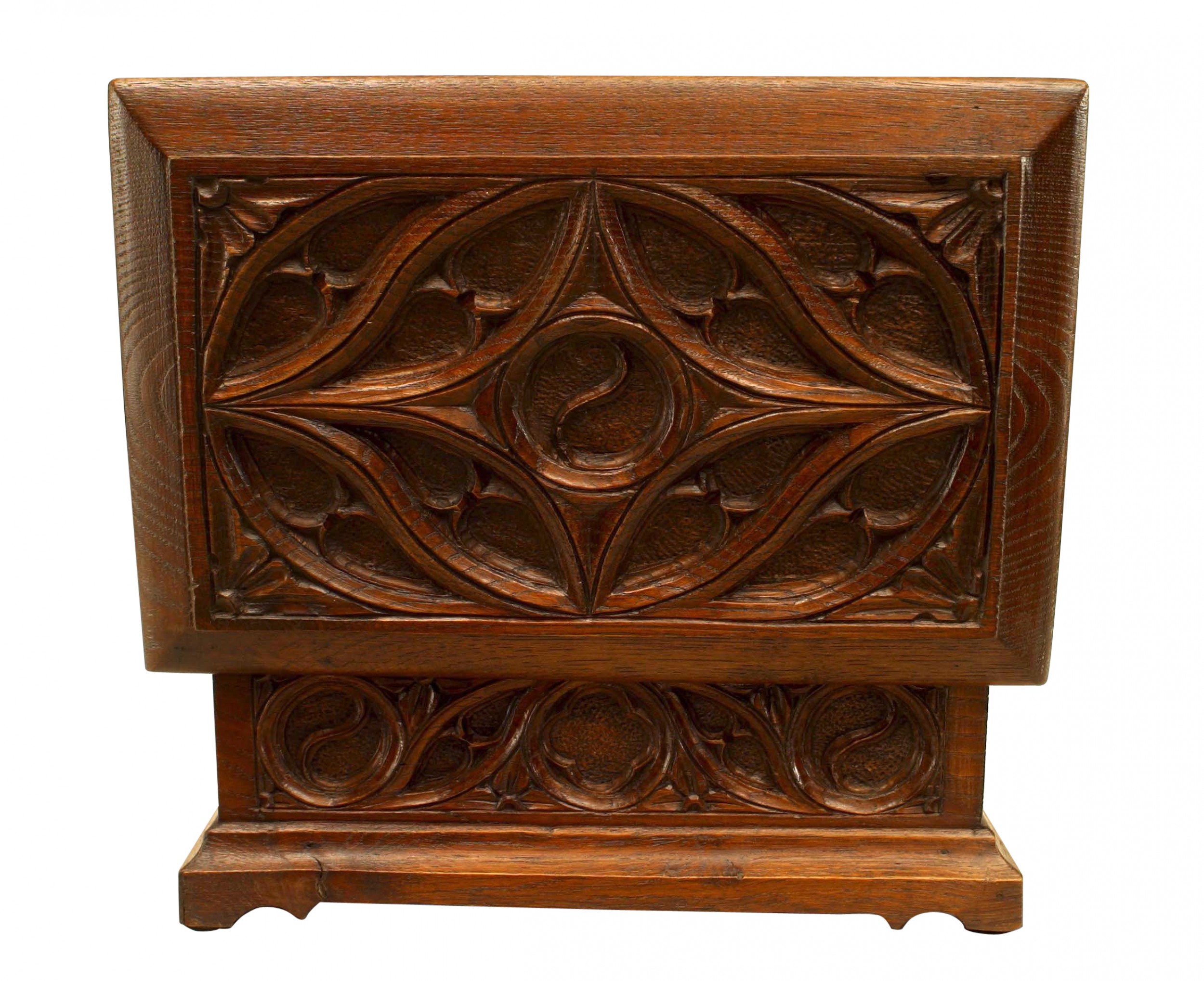English Gothic Revival-style (1st Quarter 20th Century) oak letter box with tracery carved sides and top