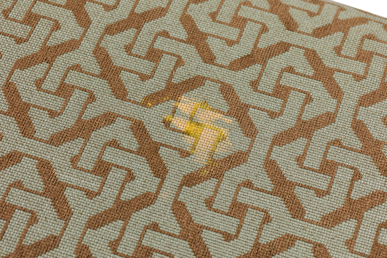 Style: English Materials & Techniques: Fabric, wood Category: Seating Condition: Bleach stain on upholstery
