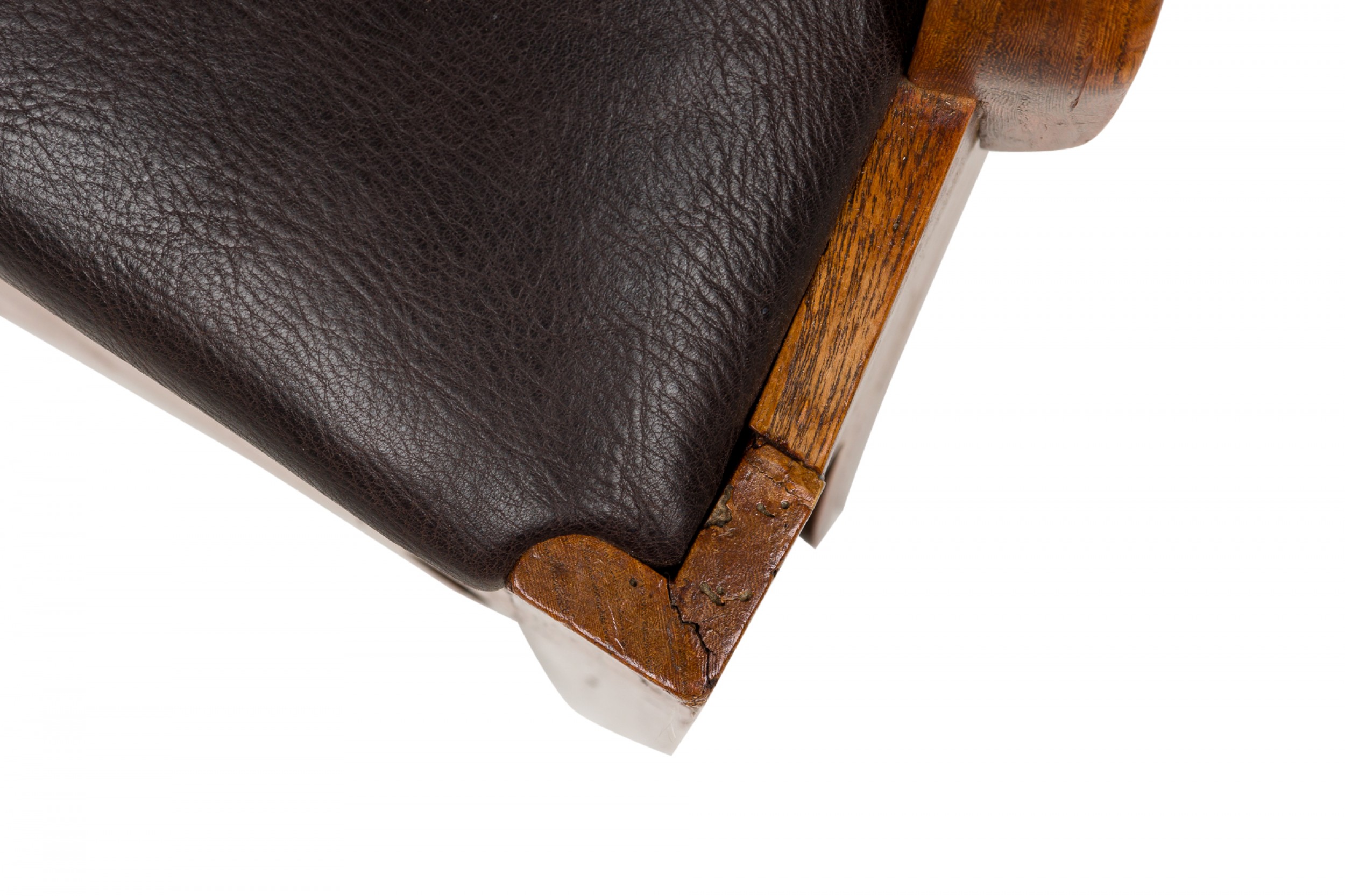 Style: English Materials & Techniques: Leather, upholstered, wood Category: Seating Condition: Seat is permanently installed and no longer removable Good; Wear consistent with age and use