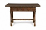English Jacobean-Style Carved Mahogany Leather Top Console Table