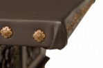 Style: English Materials & Techniques: Brass, carved, leather, mahogany, wood Category: Tables, Dining Room Good; Wear consistent with age and use