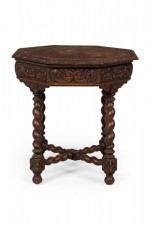 English Jacobean-Style Carved Spiral Turned Leg Octagonal Occasional / Side Table