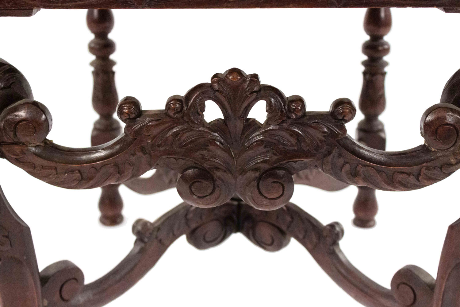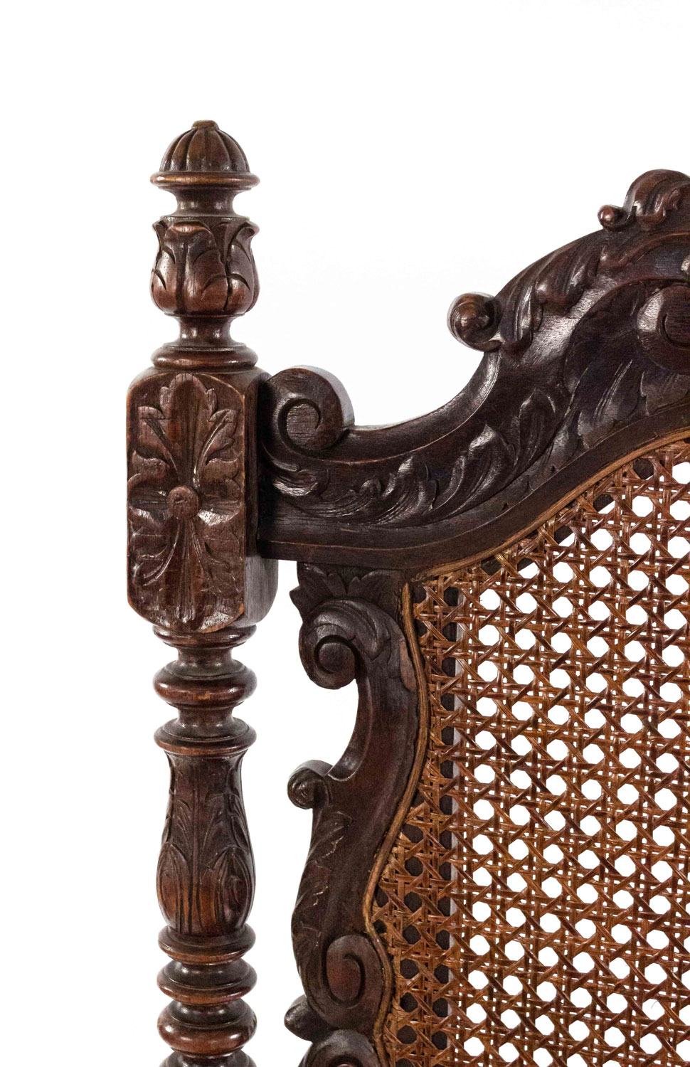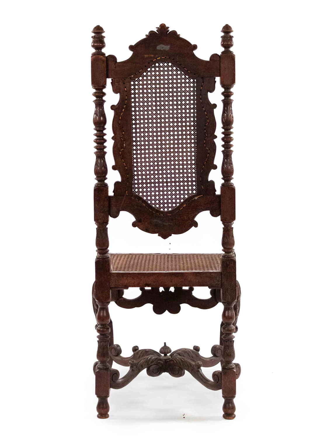 PAIR of English Jacobean style (19th Cent) walnut side chairs with cane seat and back with finial on stretcher. (matching side chairs #037796A)