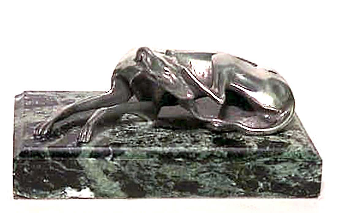 English marble paperweight with silver plate bronze whippet.