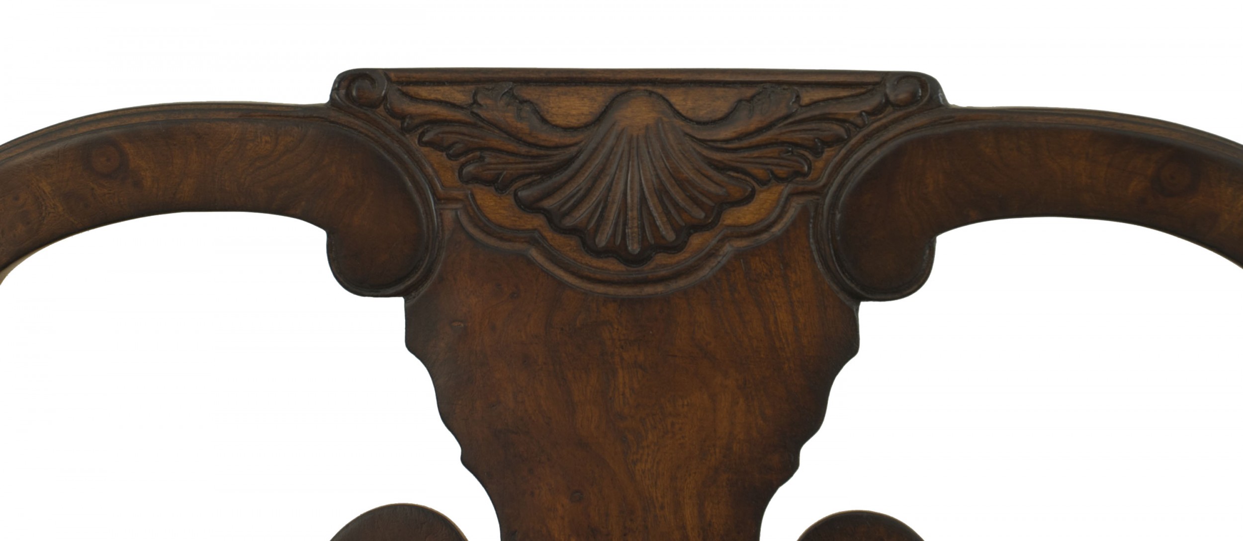 Style: English Materials & Techniques: Carved, crest, leather, walnut Category: Seating