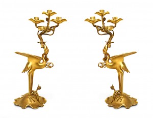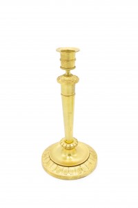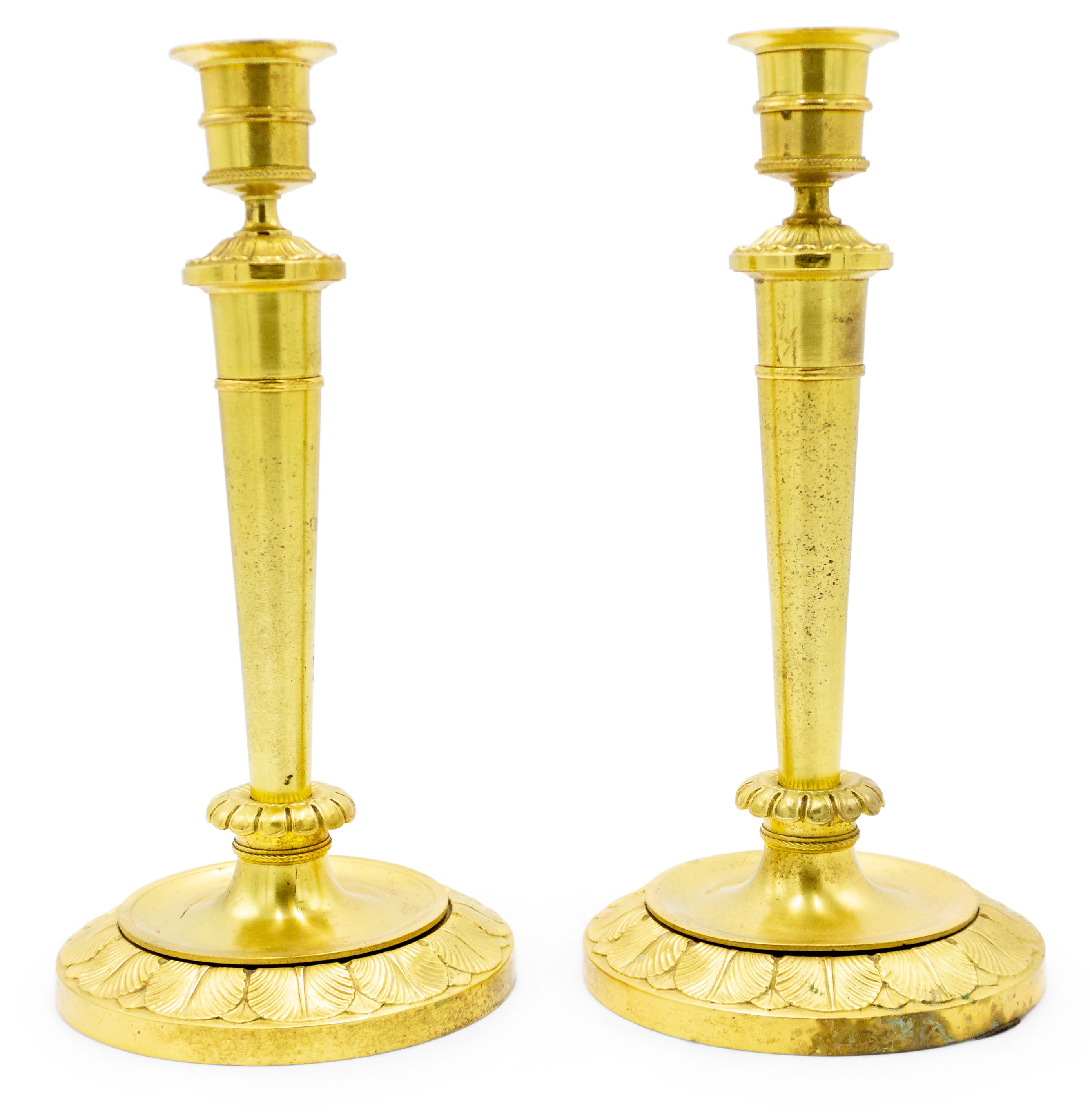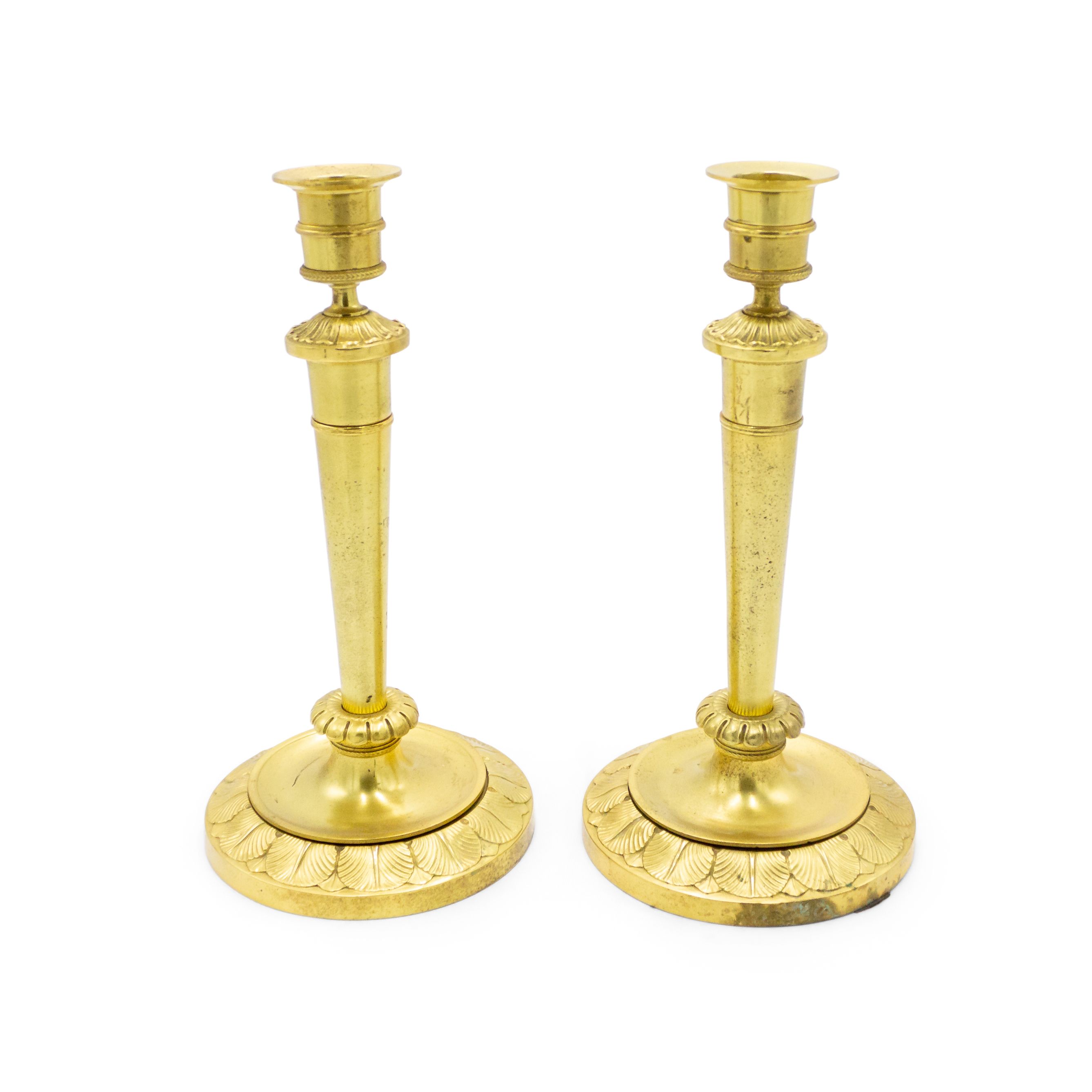 PAIR of English Regency-style (19th Century) bronze dore candlesticks with tapered column (PRICED AS PAIR).