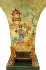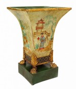 English Regency-style (19th Century) celadon Chinoiserie decorated square shaped cachepot..