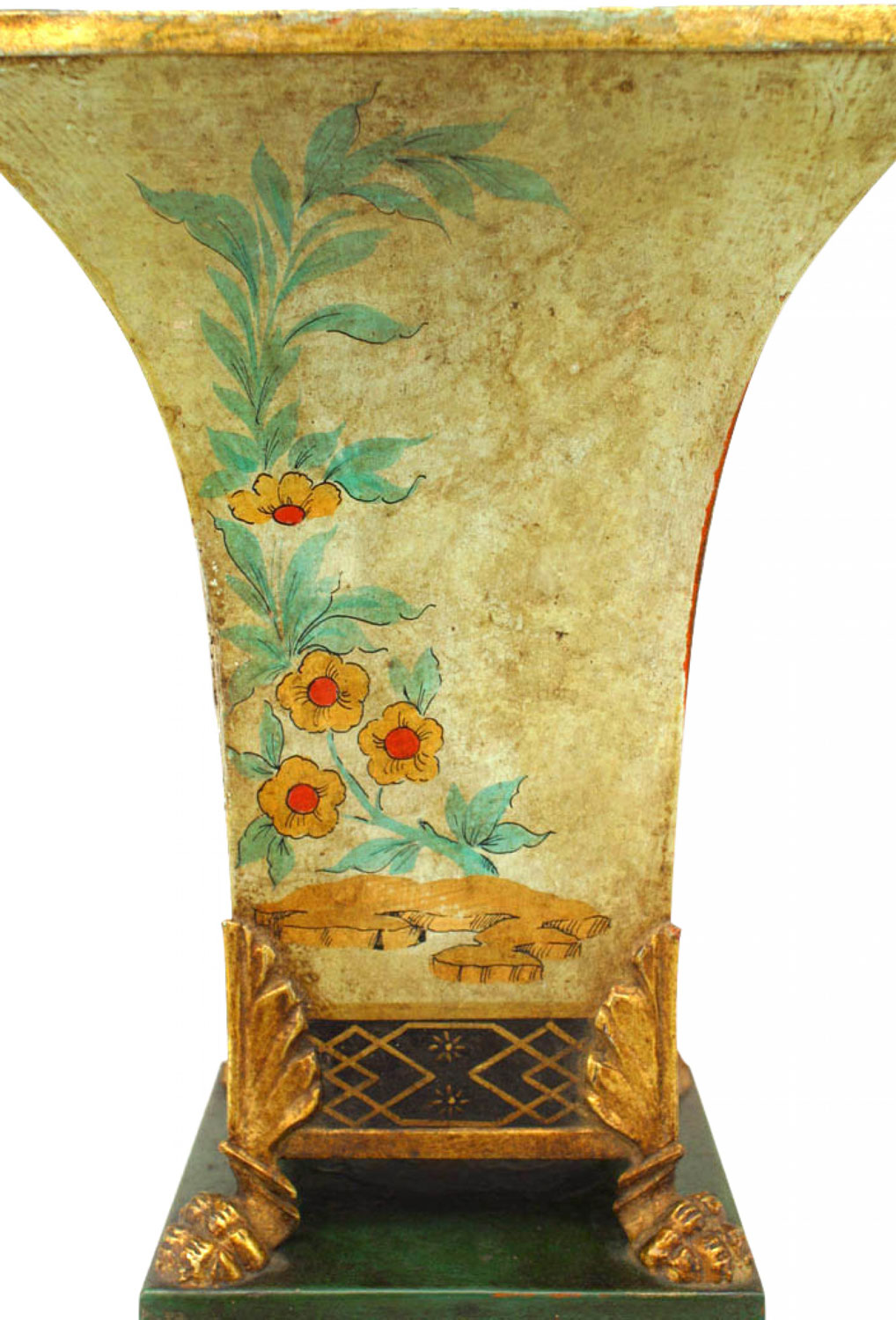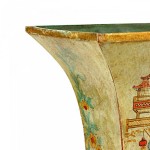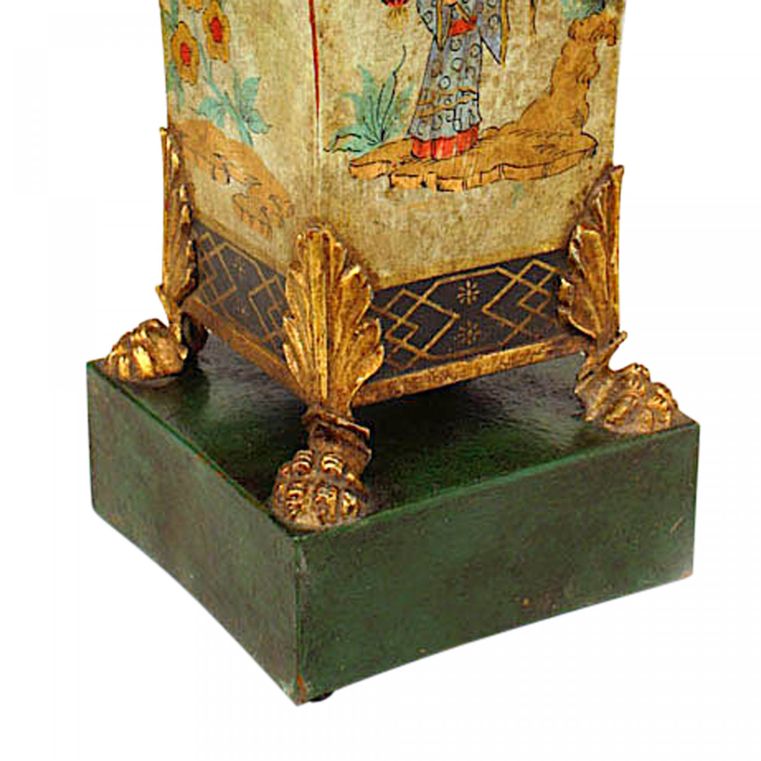 English Regency-style (19th Century) celadon Chinoiserie decorated square shaped cachepot.