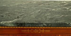 Style: English Materials & Techniques: Brass, inlaid, marble, rosewood, wood Category: Tables, Dining Room