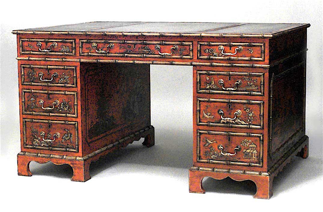 English Regency Style Lacquered Chinoiserie Partners Desk