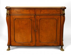 Style: English Materials & Techniques: Bronze, mahogany Category: Tables, Cabinets & Case Goods, Dining Room