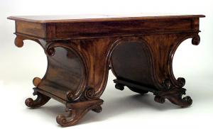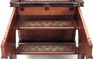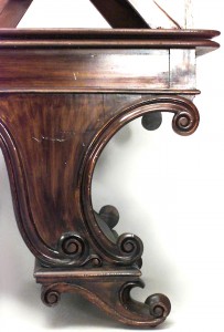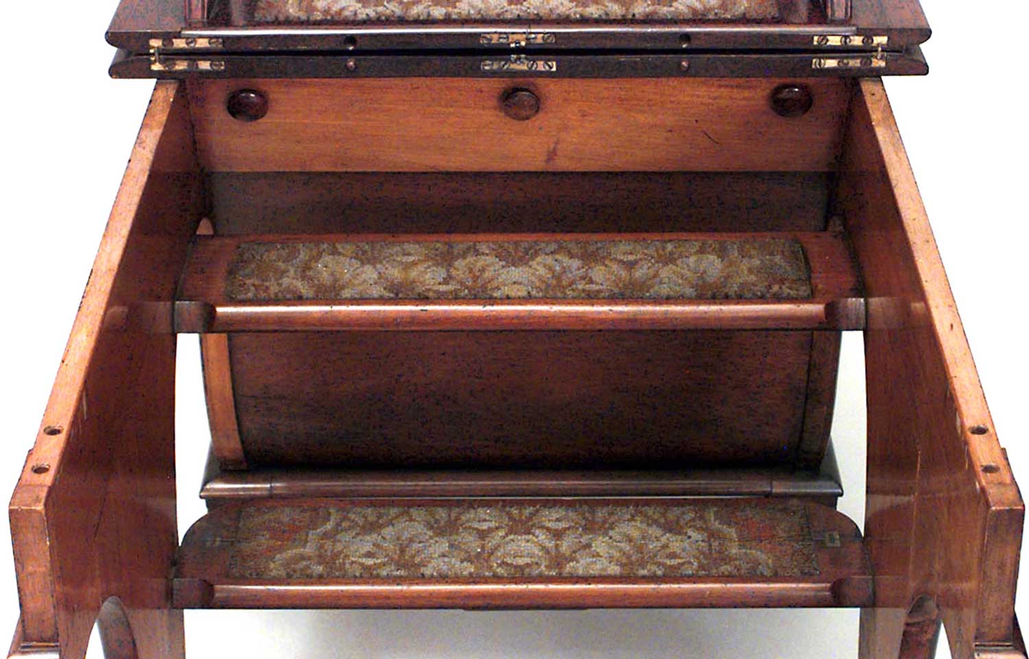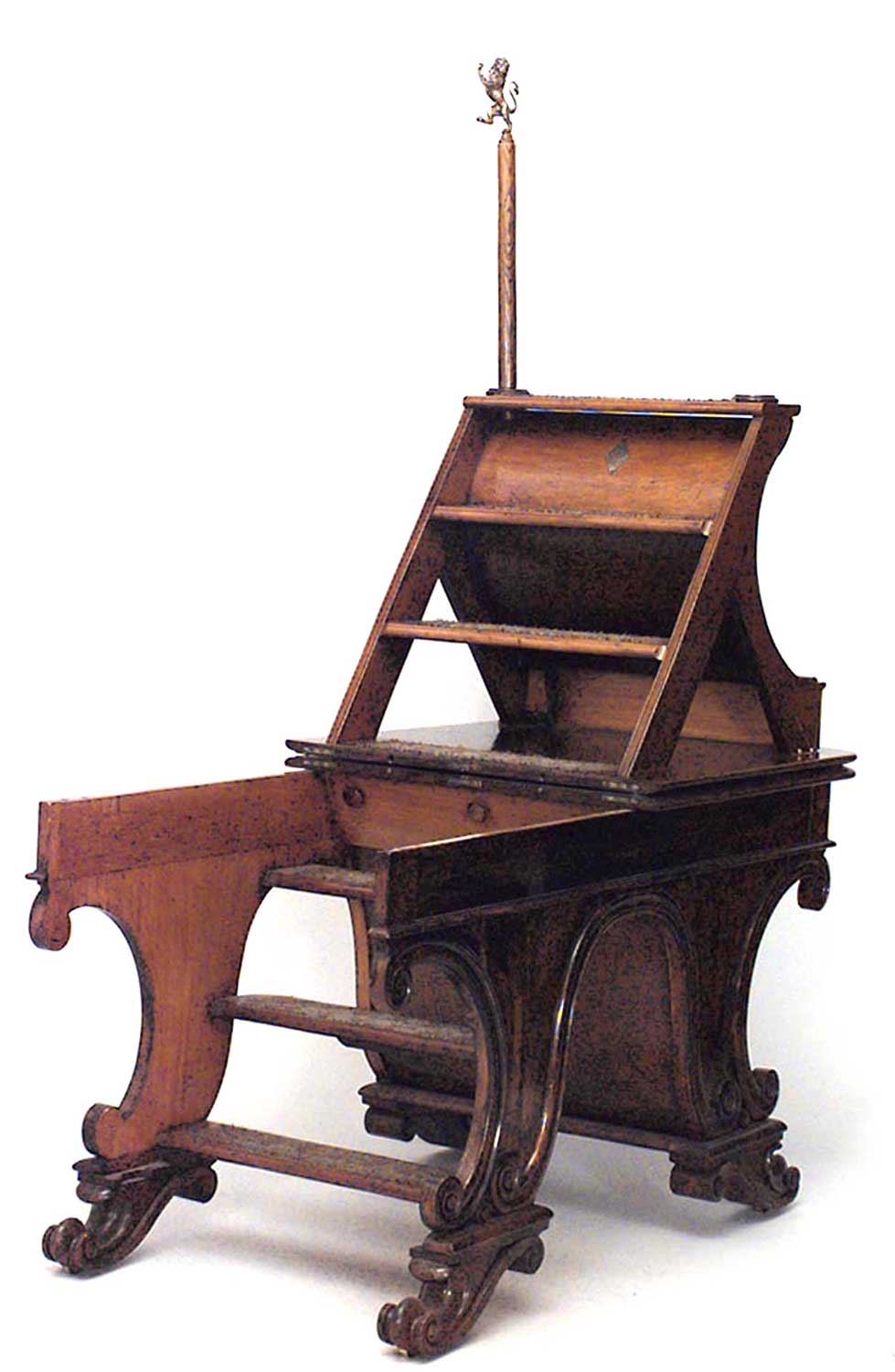 English Regency mahogany metamorphic library table/steps with hinged top & lion finial on a scrolled base. (with registry tag for J. Brodey, Bristol, dated March 12, 1851).
