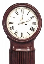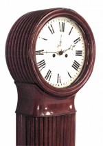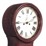 English Regency mahogany parliamentary wall clock with fluted design case and round clock face with bevelled glass front. (Not working).