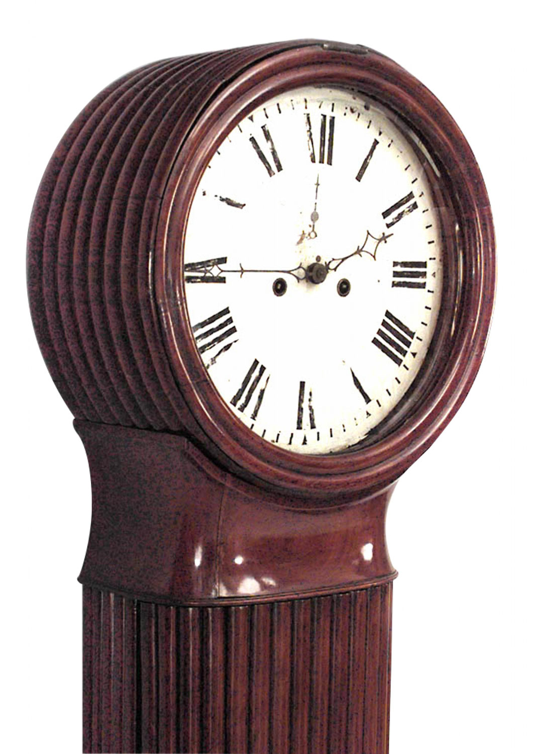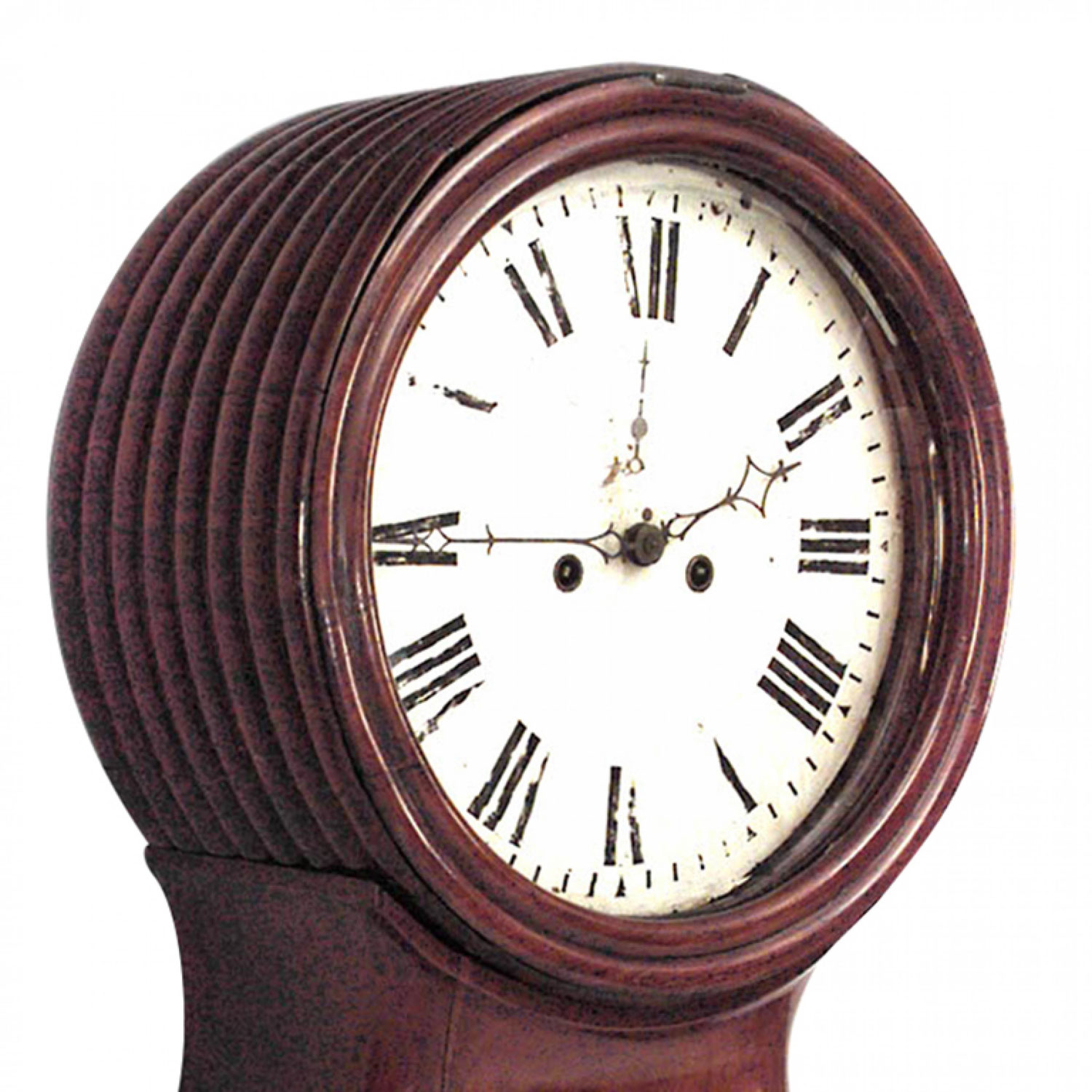 English Regency mahogany parliamentary wall clock with fluted design case and round clock face with bevelled glass front. (Not working)