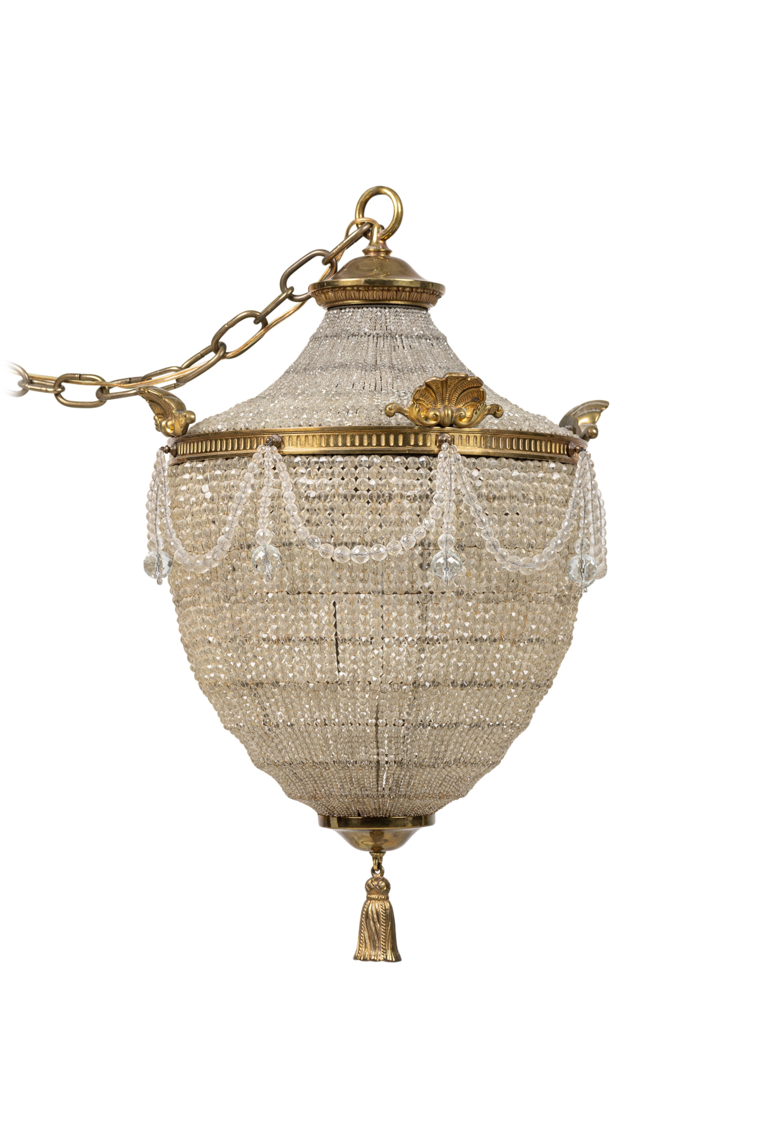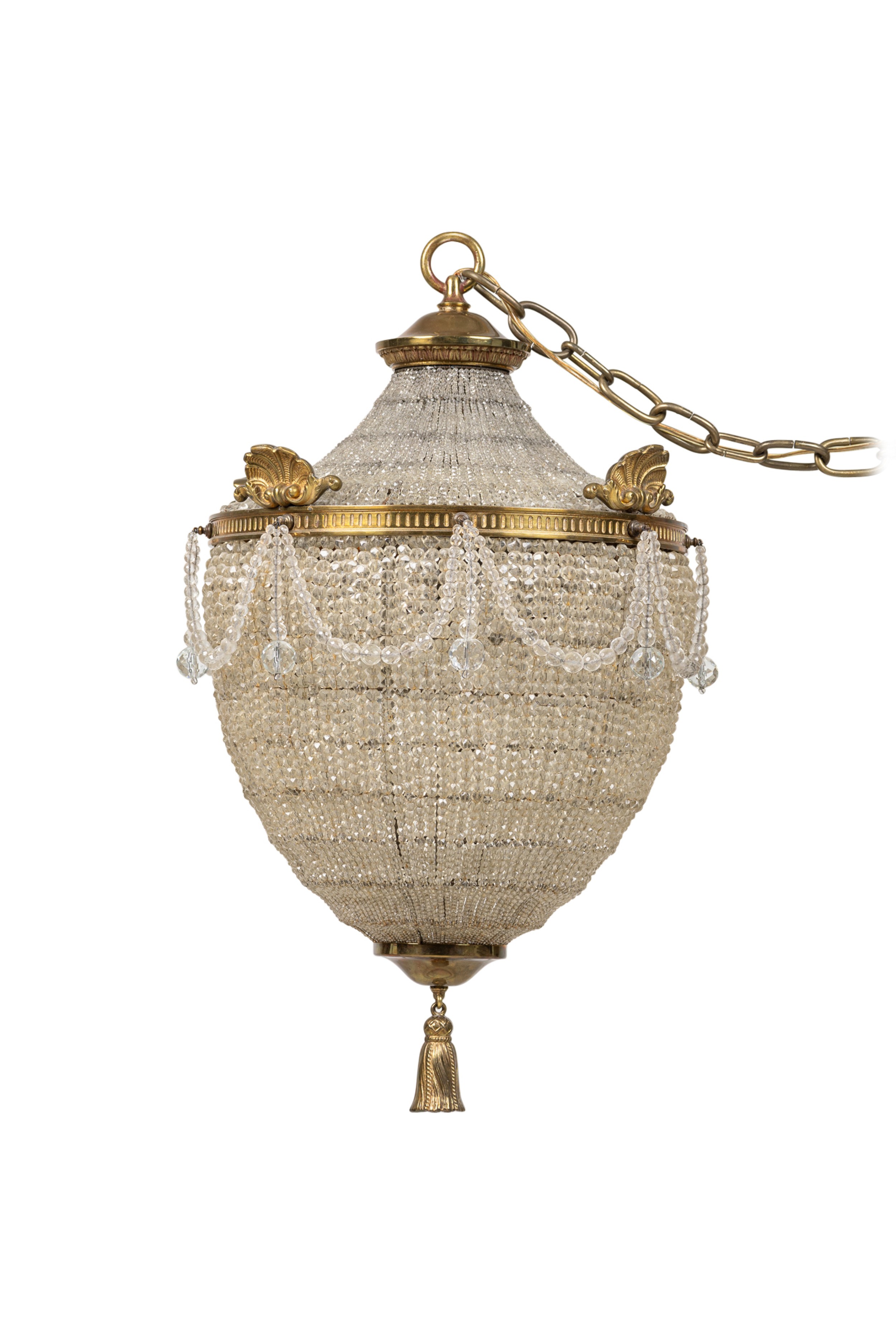 English Regency Style Basket Acorn Beaded Crystal Chandelier