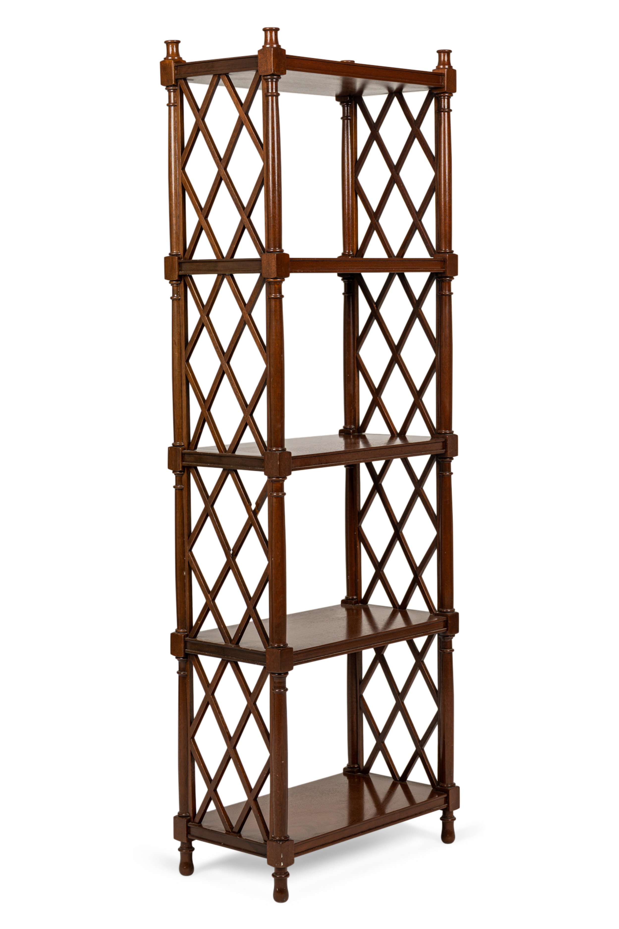 English Regency-Style Mahogany Lattice-Sided 4-Shelf Etagere / Bookshelf