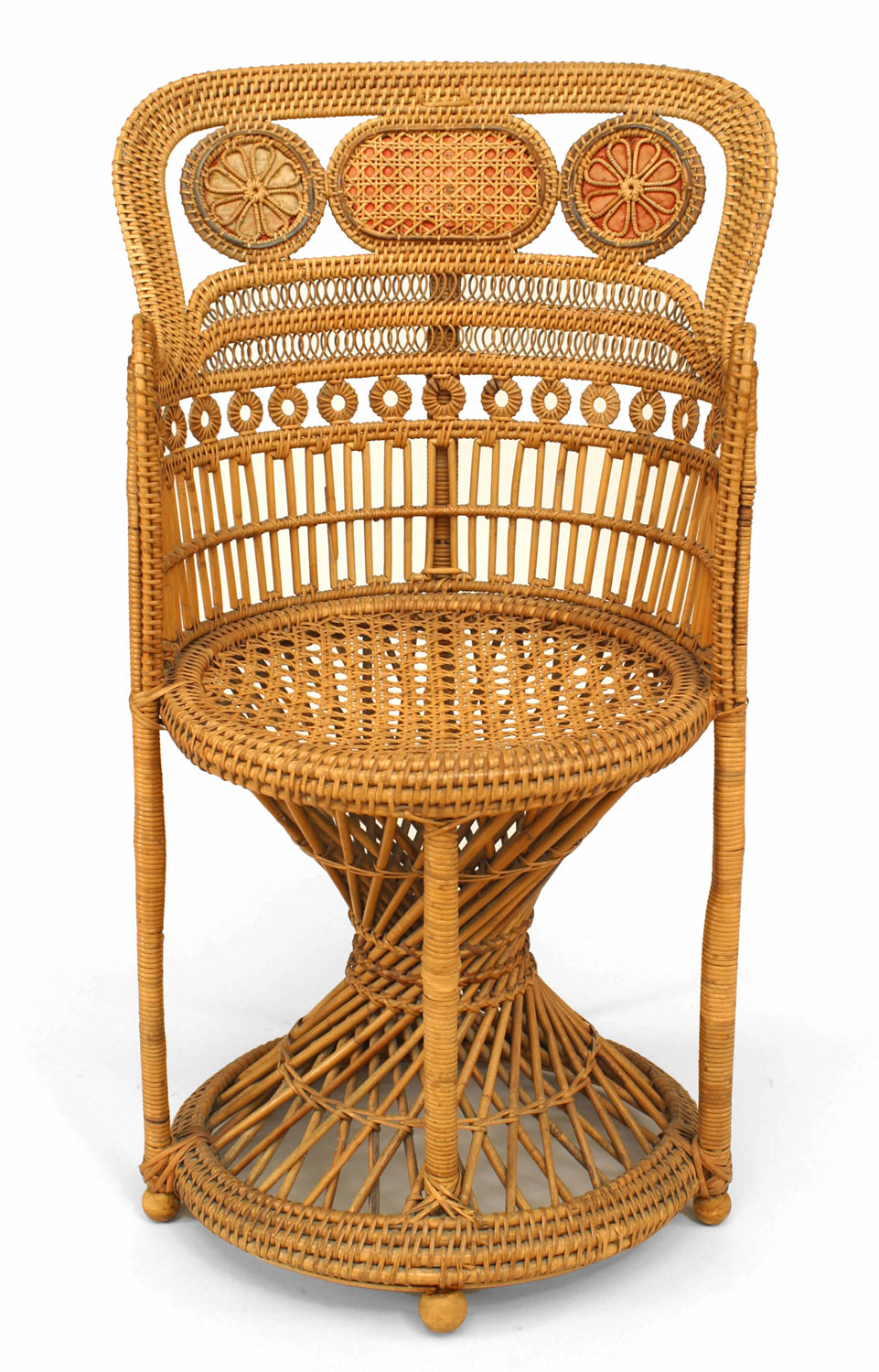 English Regency style (19th Cent) Brighton design natural wicker round back arm chair with hour glass base..