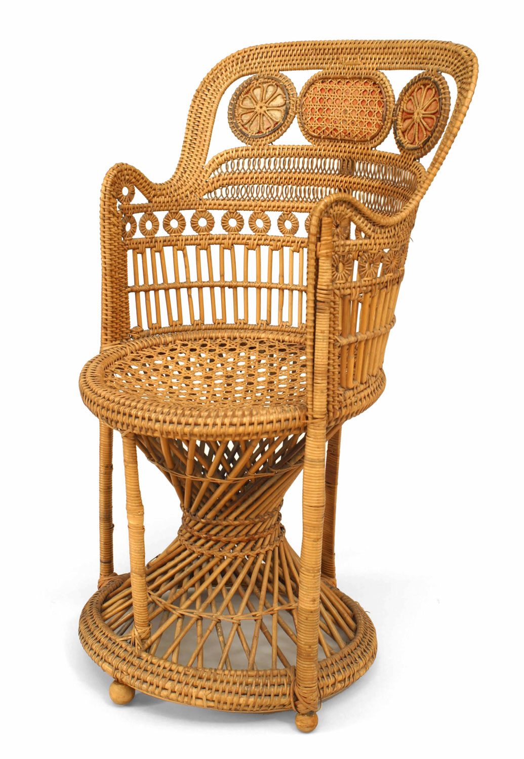 English Regency style (19th Cent) Brighton design natural wicker round back arm chair with hour glass base.