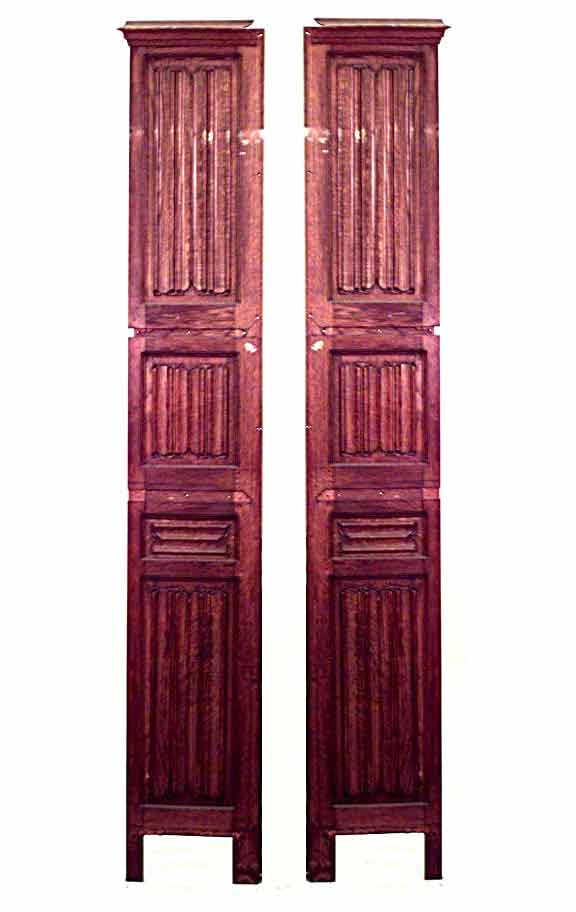 PAIR of English Renaissance style (19th Century) narrow carved oak linenfold panels (PRICED AS PAIR)..