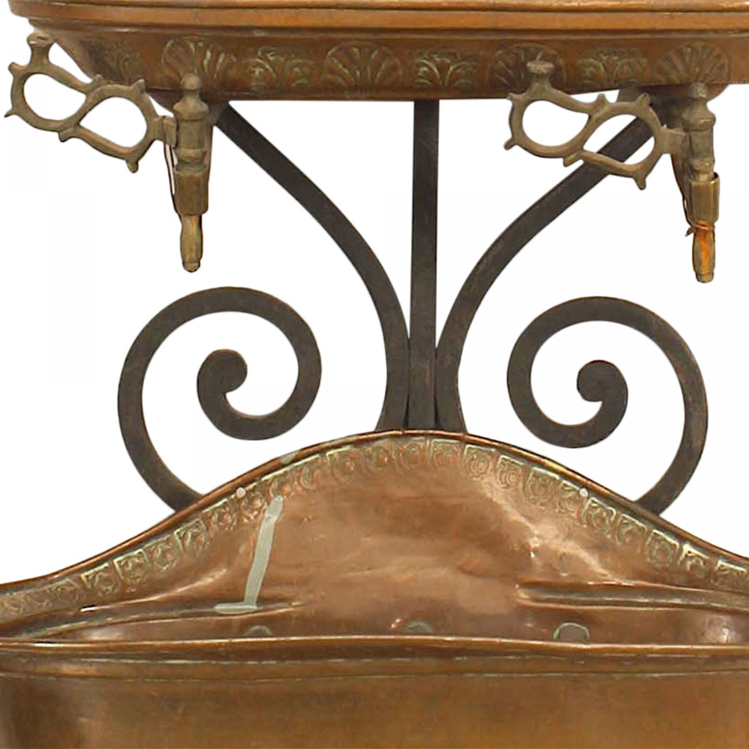 English Renaissance Revival (19/20th Century) copper lavabo with wrought iron bracket. No lid/ sold "AS IS".