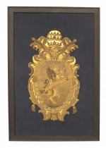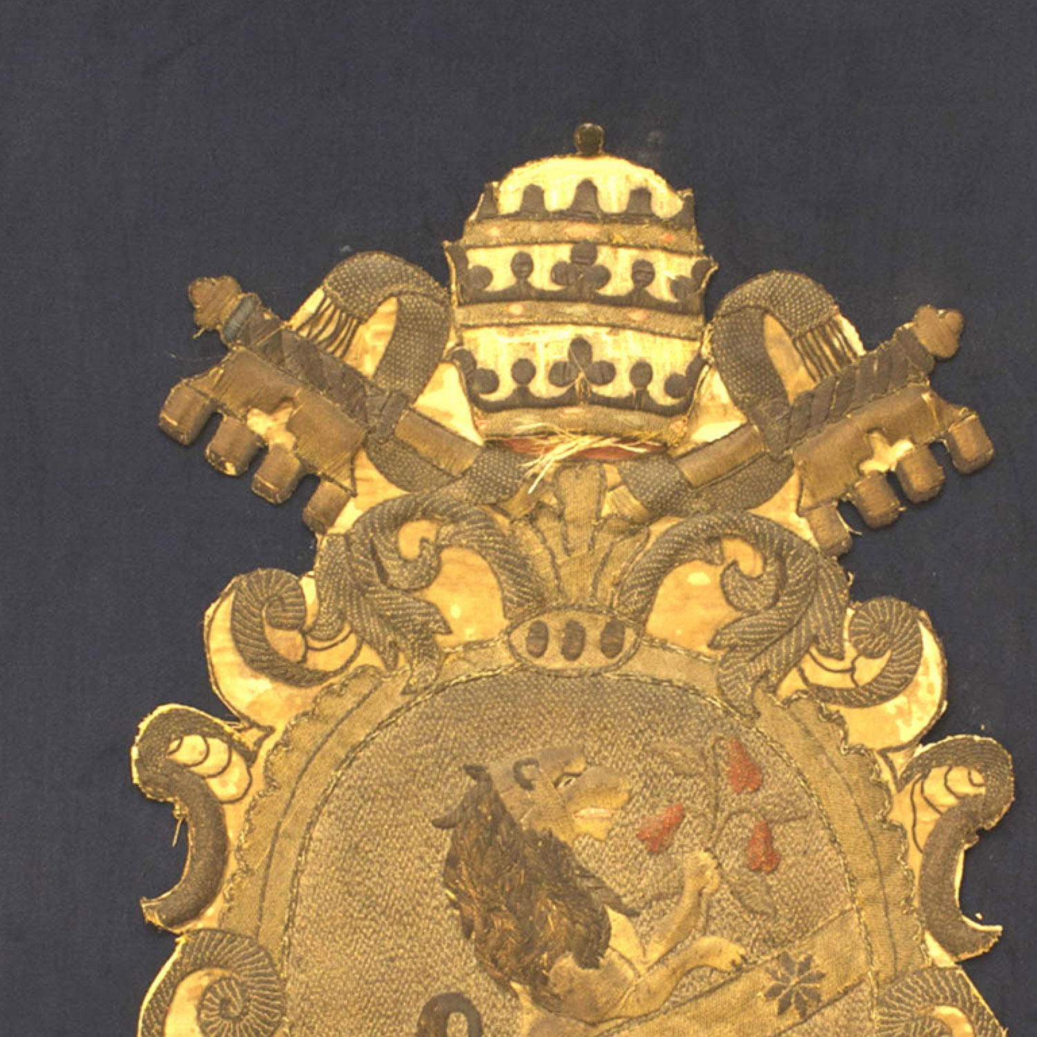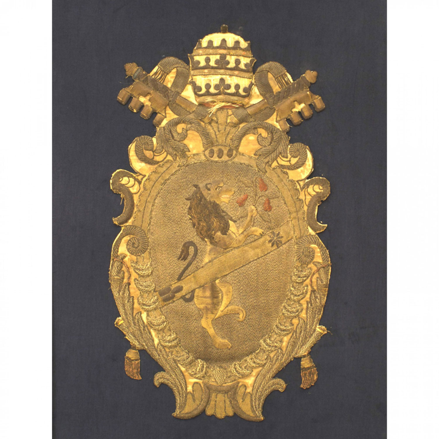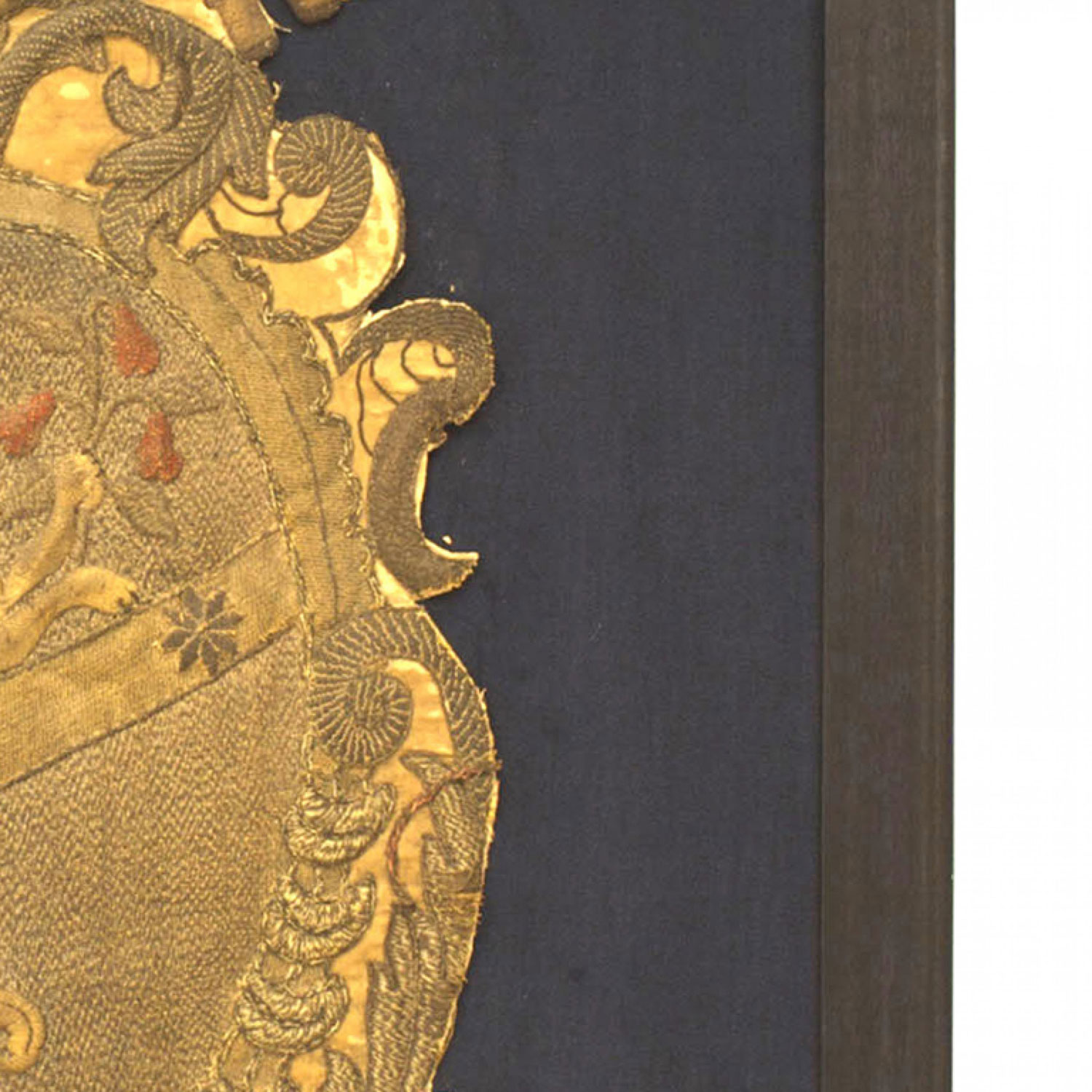 Style: English Materials & Techniques: Velvet, crest, embroidery, woven Category: Cleared Art, Rugs/Textile