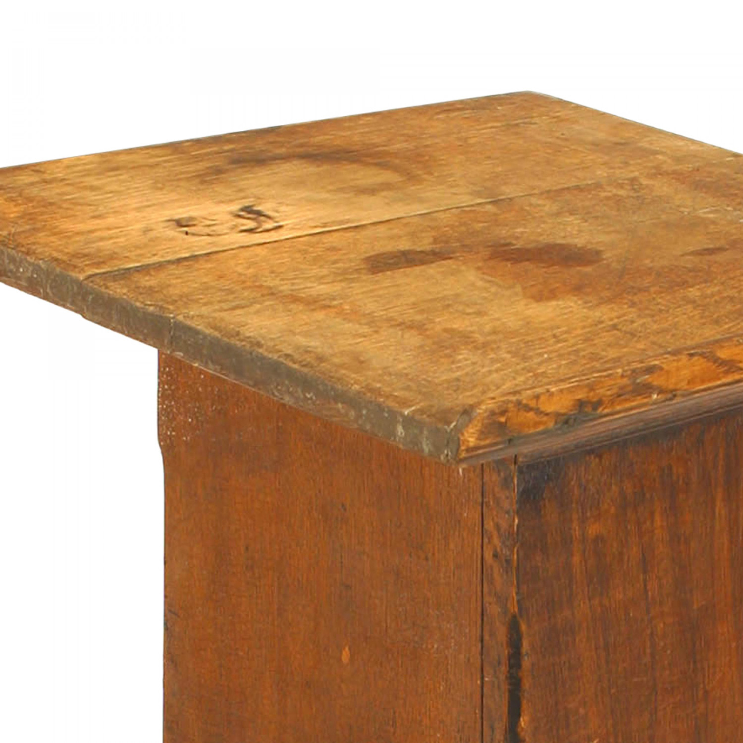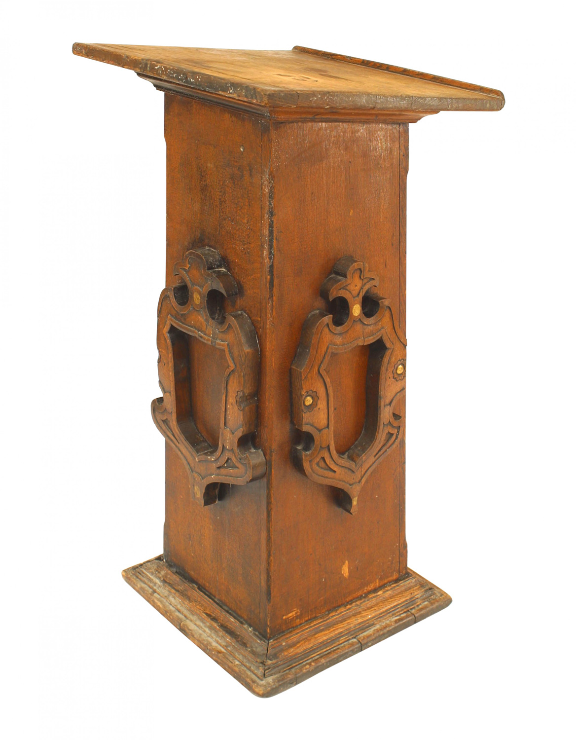 English Renaissance style (19/20th Cent) stained oak square based lectern with carved shield sides.