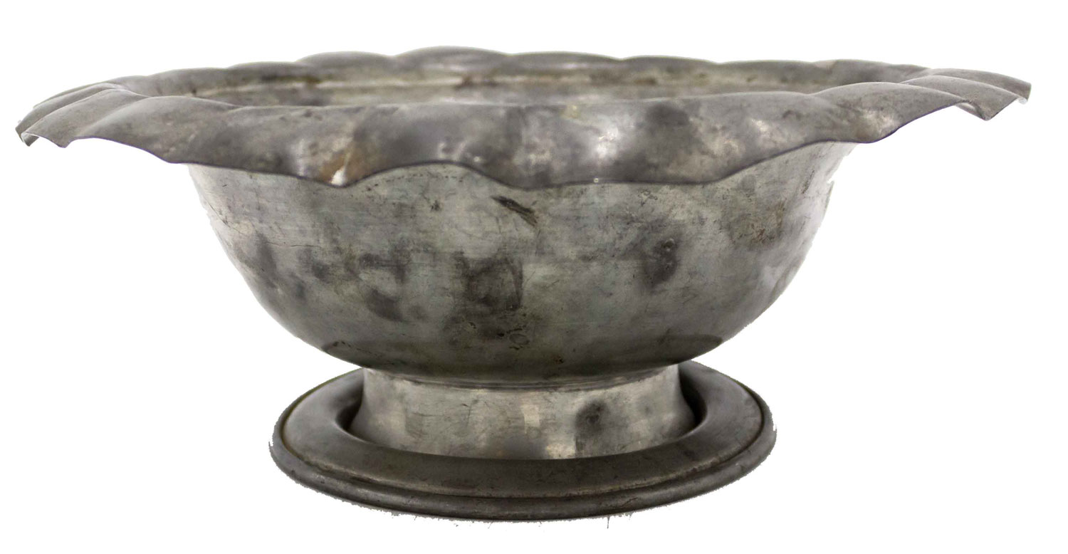 English Renaissance-style (20th Century) pewter compote with scalloped top.