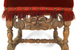 Style: English Materials & Techniques: Oak, velvet, carved Category: Seating