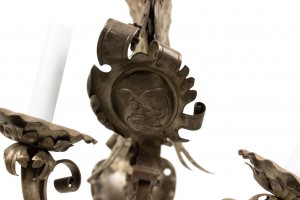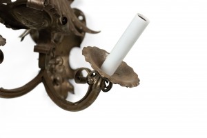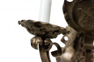 Style: English Materials & Techniques: Metal, steel Category: Lighting Condition: There is one missing bobeche and the other has a broken arm/bobeche