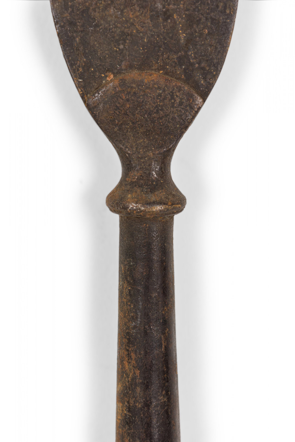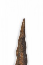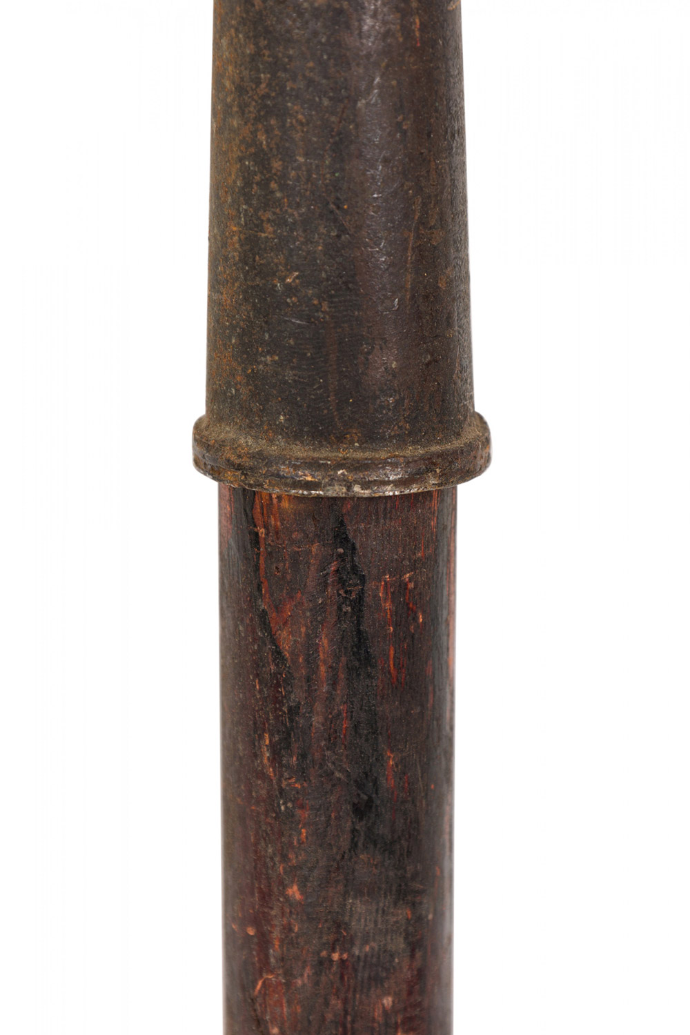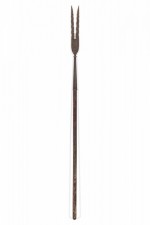 English Renaissance-style short spear with simple wooden shaft and 24½-inch etched iron two-prong blade