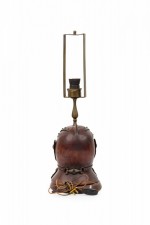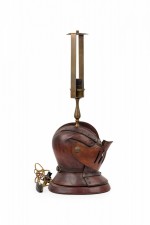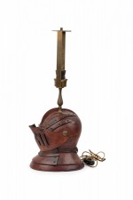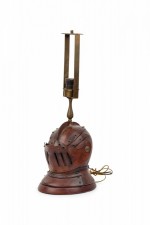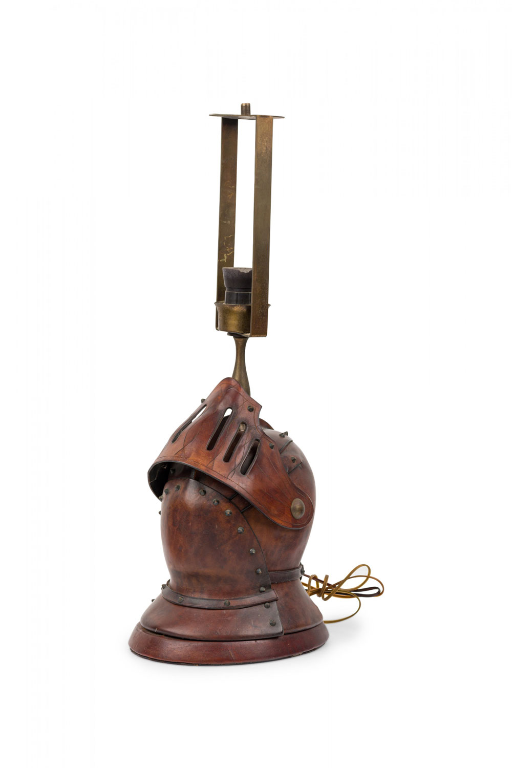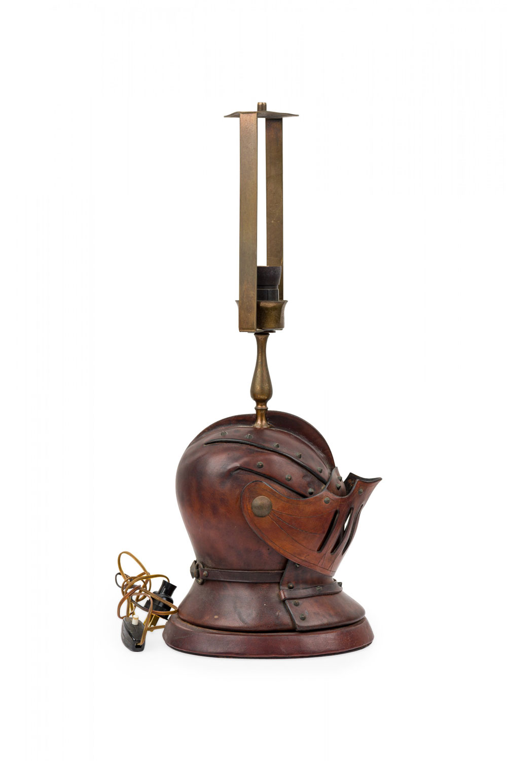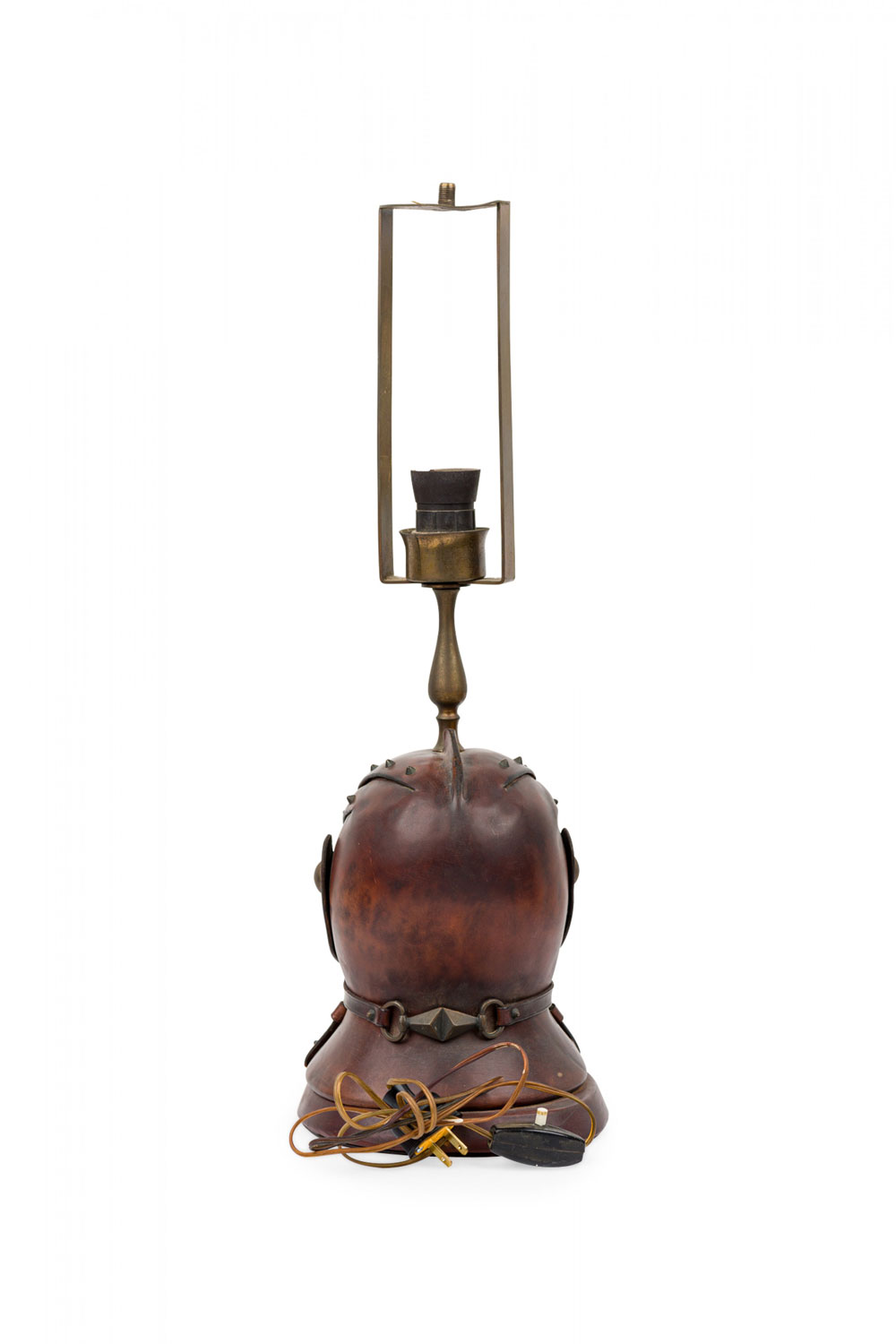English Renaissance-Style Novelty Brown Leather Knight's Helmet Table Lamp